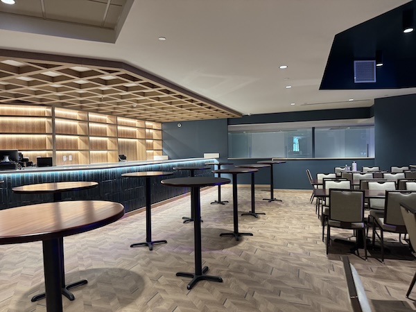最大で50名ほど収容できるガラス張りの個室ダイニングスペースもあり、室内のスクリーンは会場の大型LEDスクリーンと連動することができる。