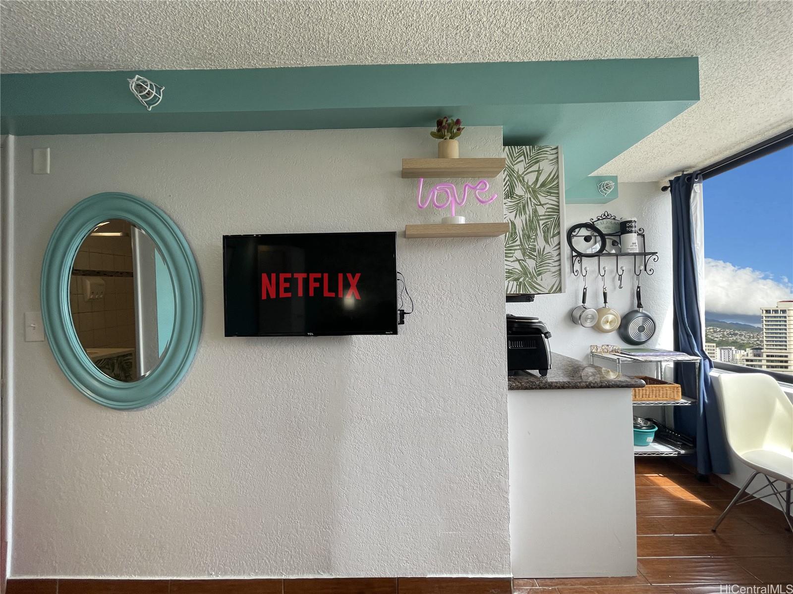 7-11 is right next to this building, including a Smart Car Rental 808 upstairs incase your guests decide they want to rent one last minute! Parking Garage easily accessible to guests when needed, still cheaper than the hotel parking.
