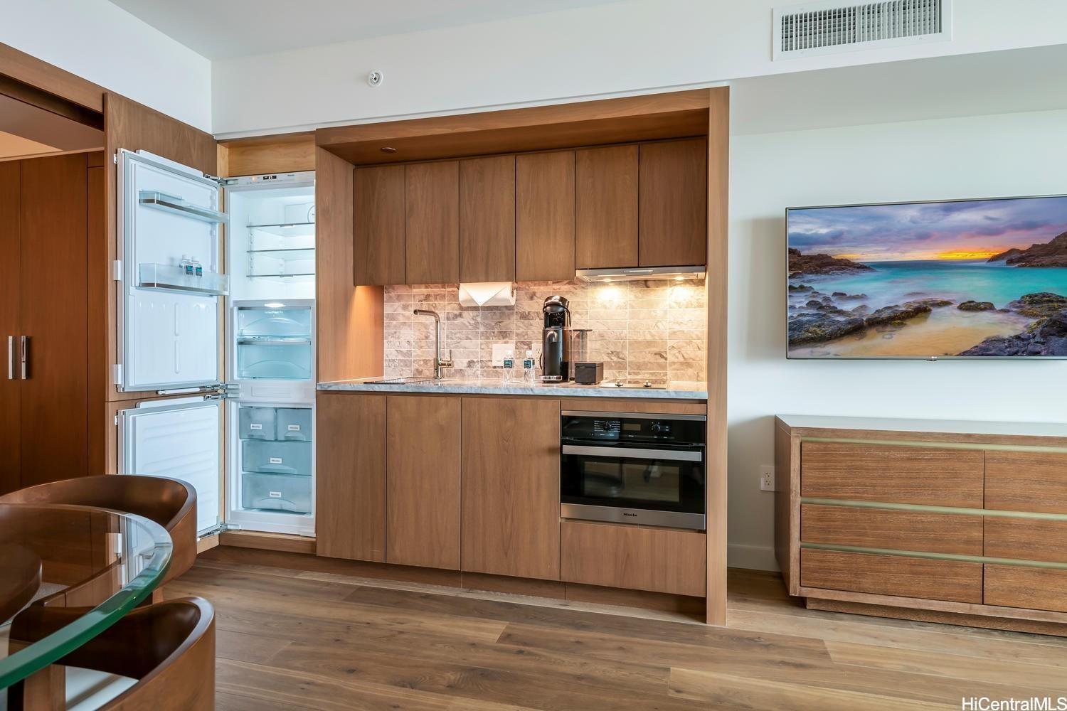 Luxury Living at The Ritz-Carlton Residences, Waikiki Beach. Experience exceptional island living in the Diamond Head Tower. Spacious studio offering stunning ocean and city views. Elegantly fully furnished with upscale finishes, premium appliances, and an in-unit washer and dryer. Enjoy breathtaking sunsets and the famous Friday night fireworks from your lanai. Currently using as private resident.