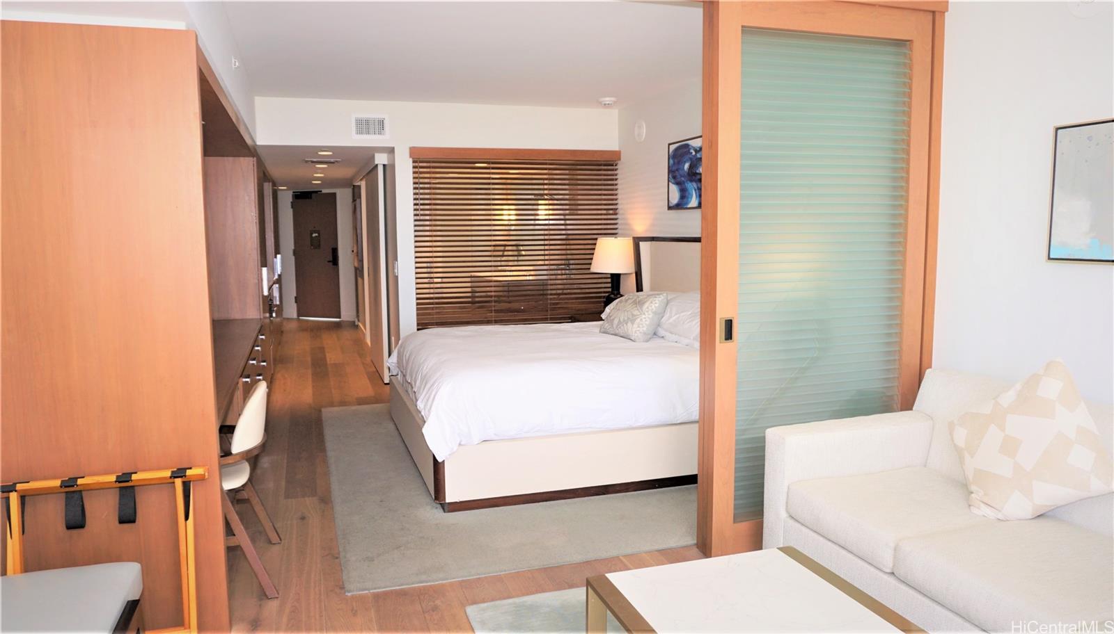 Enjoy luxury living at The Ritz-Carlton Residences Waikiki! This fully furnished large studio unit is in Diamond Head Tower with beautiful ocean view over Fort DeRussy Park. It has hardwood flooring throughout, washer and dryer, kitchen, double sink in bathroom and floor to ceiling windows. World-class amenities include valet parking, concierge services, infinity pool, Ritz spa, fitness center, restaurants and more. One or more photos have been enhanced.