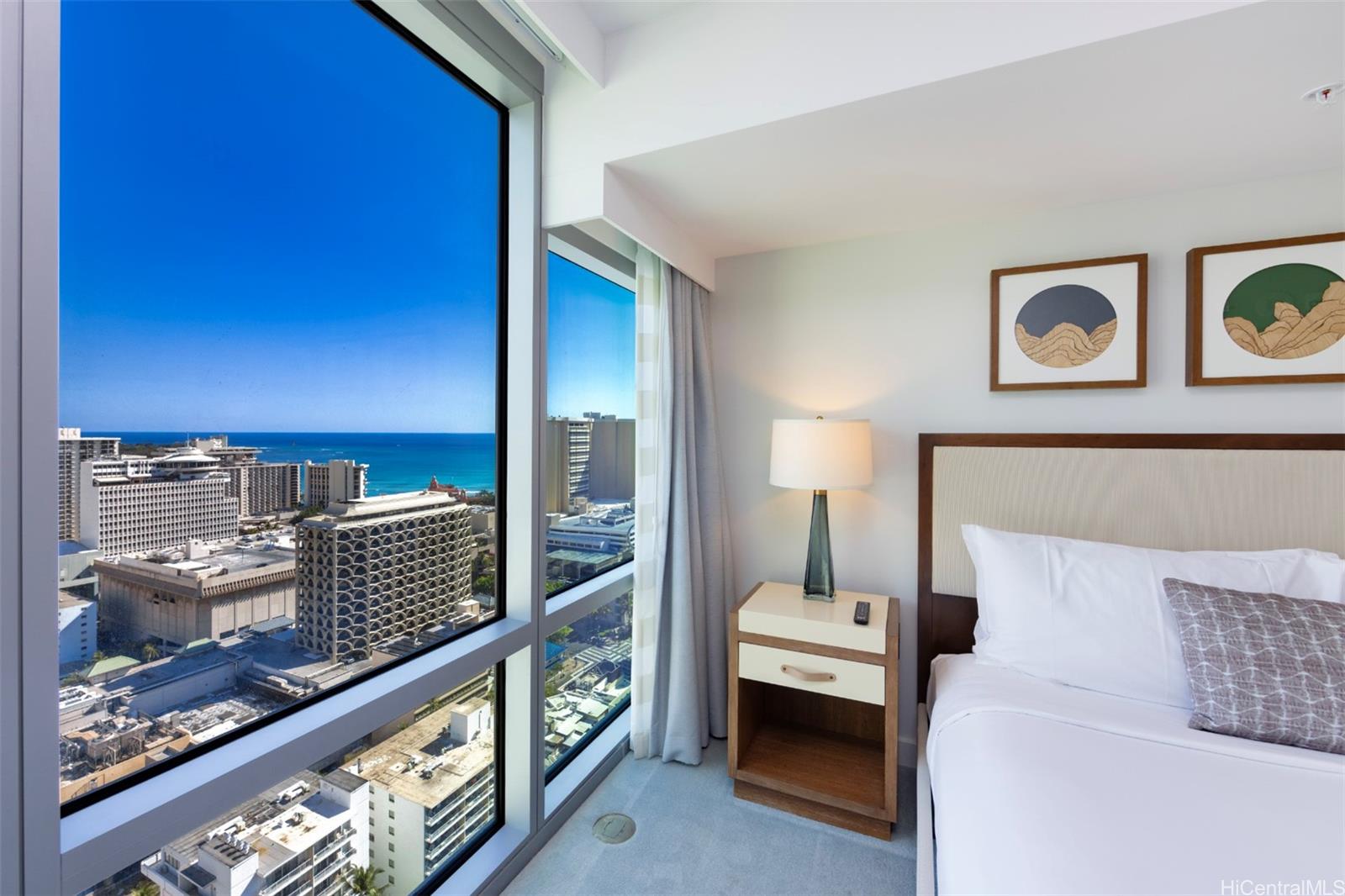 Island-Style Luxury meets 5-Star Resort Resort Living at the Ritz-Carlton Residences Waikiki. Located in the newer Diamond Head Tower 2 completed in 2018, this 1 bedroom, 2 full bath end-unit enjoys stunning 180-degree views of the Pacific Ocean, partial Diamond Head, Ala Wai Canal, and Ko'olau Mountains. Enter to find a contemporary floor plan combining living, kitchen, and dining spaces. A private lanai just off the main living area is the perfect place to enjoy morning sunrises with views of paradise. The bedroom suite also features direct Diamond Head and Ocean views, and features a true resort ensuite bathroom with separate deep soaking tub and walk-in shower. Centrally located in Waikiki, fine dining, high-end shopping, sandy beaches, stretching coastlines, and water activities are just minutes away. A Lifestyle of Luxury awaits at the Ritz. This property is an ADA-compliant unit.