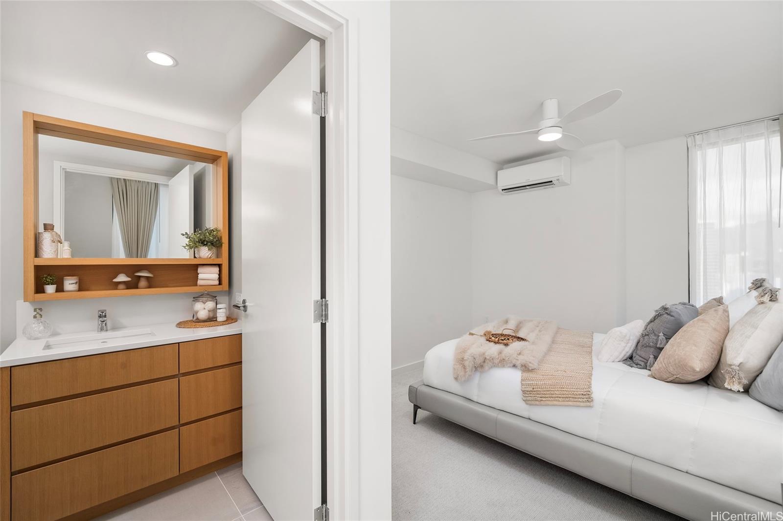 Experience elevated urban living at Sky Ala Moana West, one of Honolulu’s newest and most sought-after high-rises. This 33rd-floor corner residence features 2 bedrooms and 2 baths, showcasing sweeping city views from the living area and lanai, complemented by tranquil ocean vistas from both bedrooms. Ideally situated near Ala Moana Center, Kakaako, and Waikiki, with convenient access to hospitals and freeways. The home is thoughtfully designed with sleek modern finishes and premium stainless steel Bosch appliances. Residents enjoy an exceptional suite of resort-style amenities, including a fitness center, sauna, pool, BBQ areas, recreation spaces, dog park, and more. Discover a sophisticated island lifestyle in the heart of Honolulu.
