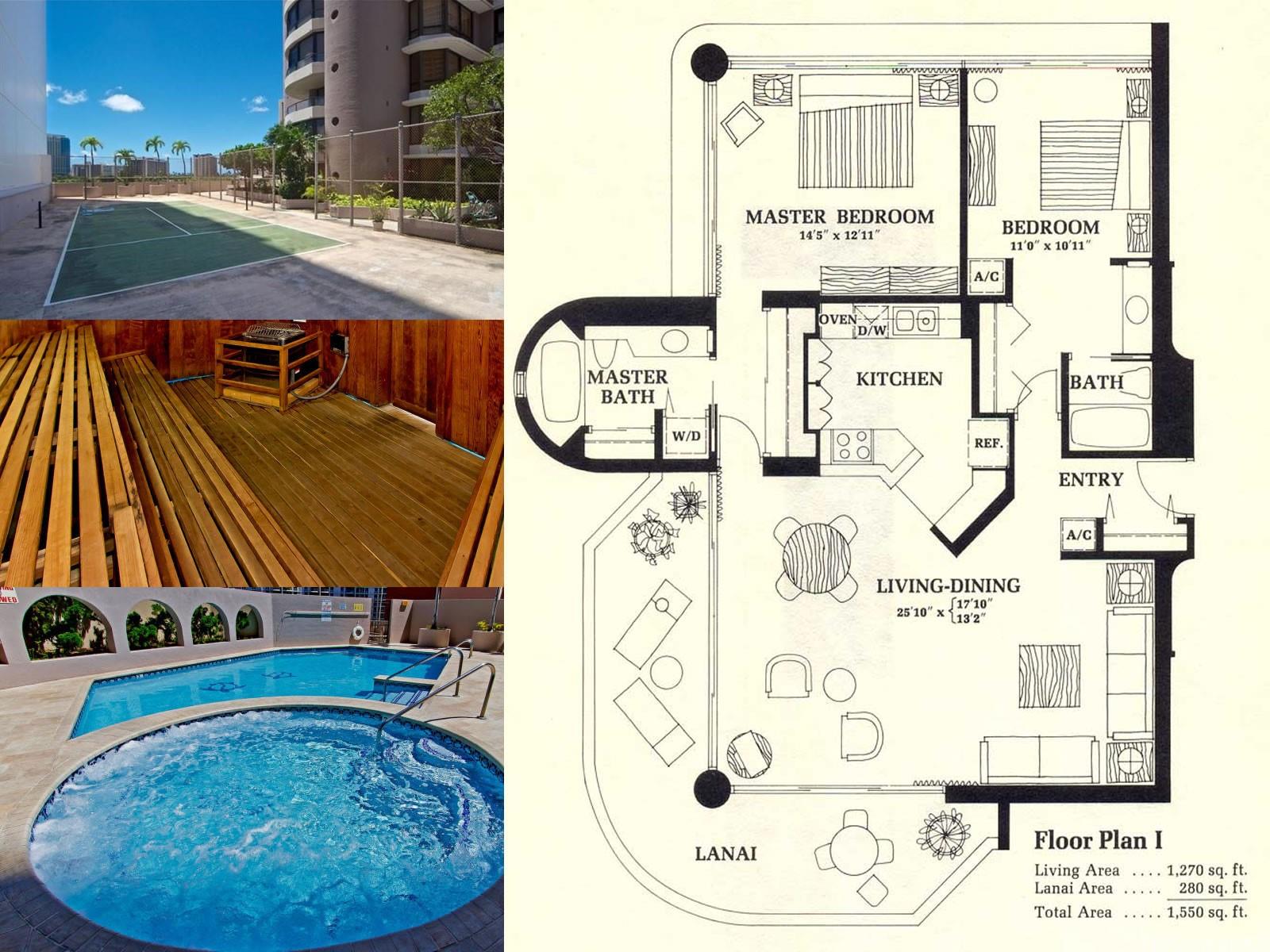 室内面積 1,270.0sqft(約118㎡) ラナイ面積 280.0sqft(約26㎡)