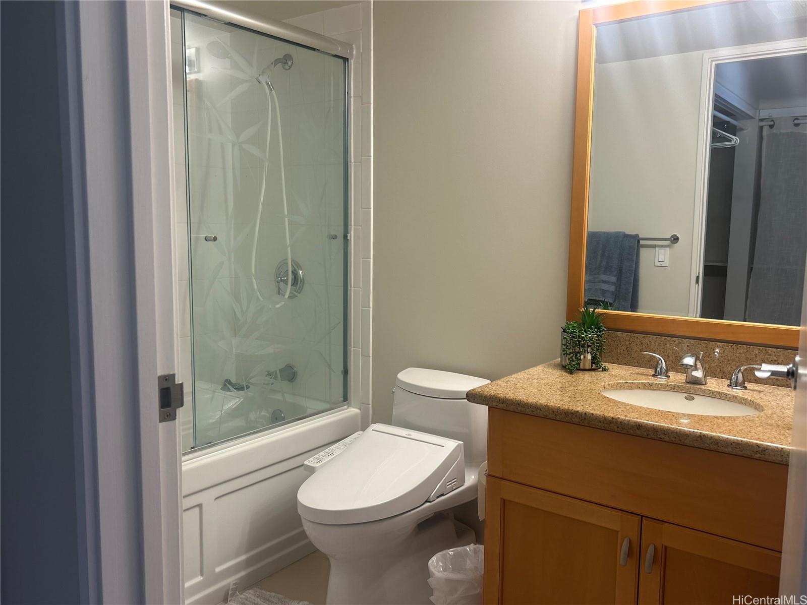 Nicely remodeled 2-bedroom 2 bath unit with 2 parking stalls on Cool and Quiet side of building! Floor to Ceiling windows provide open views of City and Mountain! Special features include granite counter tops, laminate flooring, tiled floor in kitchen and bathroom, 2 bidet toilets, Full Size Washer/Dryer in unit and more! Great amenities include, playground, EV charging station party room, theater, BBQ area, tennis count, putting green and guest parking! Convenient Location! Short distance to Ala Moana shopping Center, Beach, Restaurants, Businesses, Public Transportation and Entertainment options!