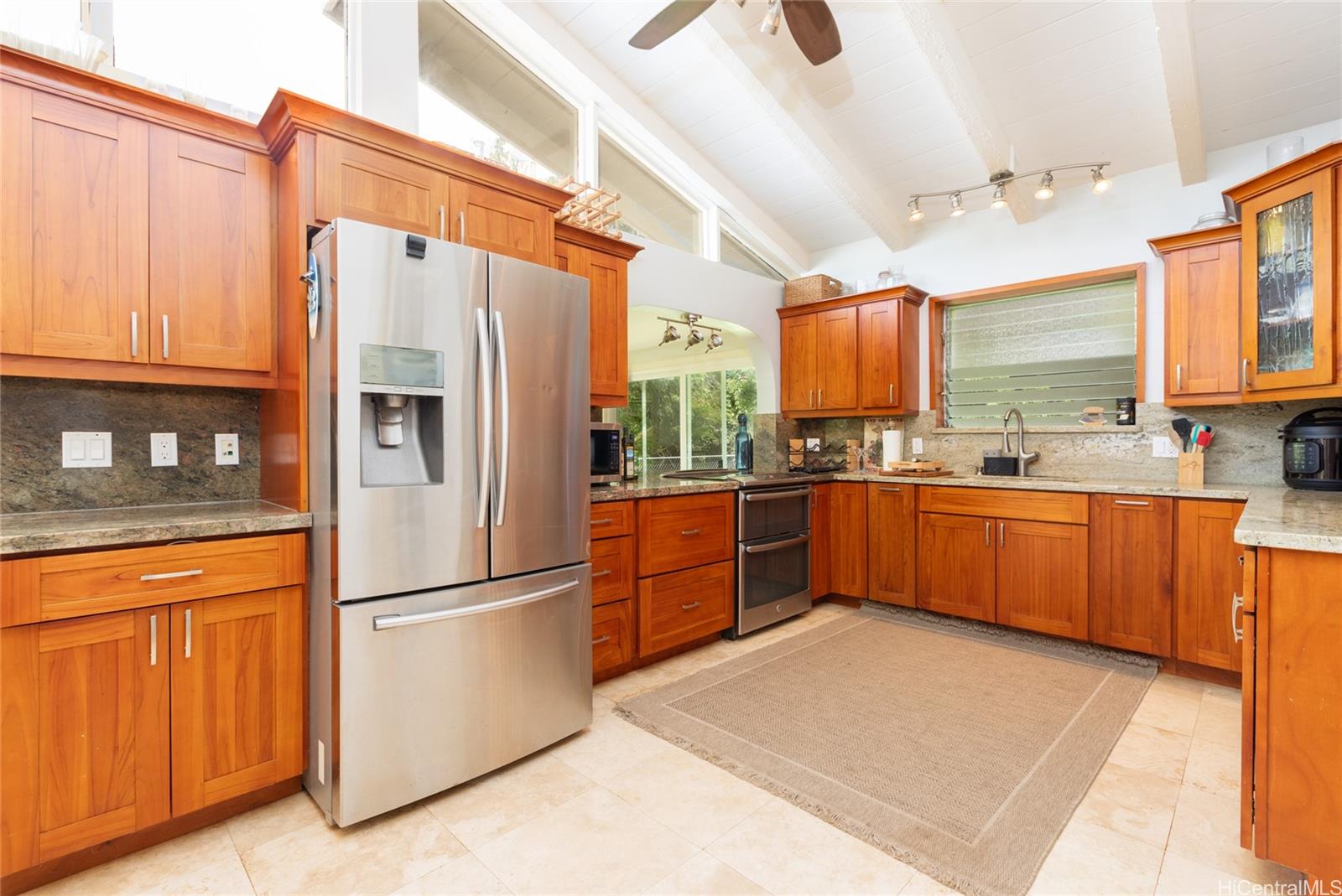Nestled atop Pupukea's lush mountainside, this 1.27 acre estate features the perfect blend of a tranquil retreat and investment property. The main house has 3 bedrooms and 2 baths with high vaulted ceilings and large picture windows to let the natural light and greenery in, while the detached rec room and garage has been artfully converted into a versatile living area if needed, easily adding 2-3 more bedrooms, 2 full baths plus a studio workshop/lounge. There’s a modular divider in the roundabout driveway adding even more flexibility and options to how you’d want to utilize this space. The outdoor shower (shown in the video) will become the must-have feature you never knew you needed until now. Enjoy your private picnic area complete with lava pit for those relaxing evenings after spending the day at one of O'ahu's iconic surf spots known the world over - just 5 minutes away. Overlooking the landscaped back yard, head to the gazebo, your peaceful haven for reflective thought. There's still so much untapped potential in the remainder of the property. However you choose to utilize this home, owning your private oasis on the North Shore is undoubtedly a coveted achievement.