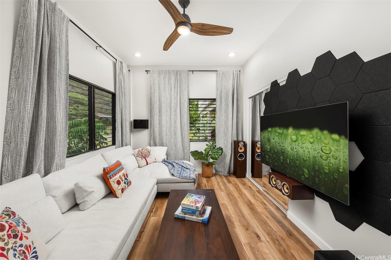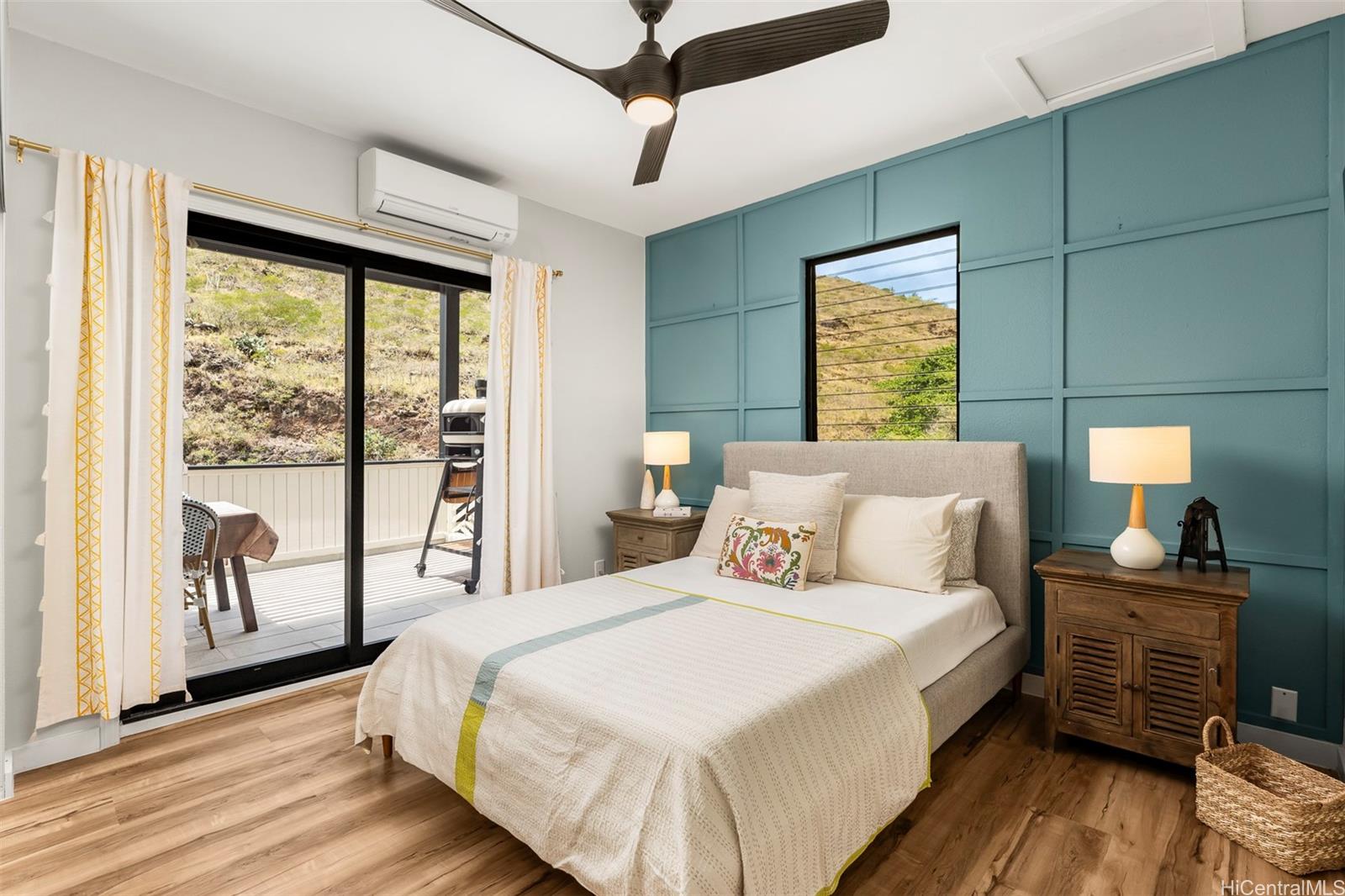 INCREDIBLE VALUE! Character, Charm & Modern Style Await! Welcome home to this fabulous TURN KEY 5-bedroom + den residence in the sought-after neighborhood of Waialae Iki. Floor-to-ceiling walls of glass frame beautiful ocean & mountain views throughout this striking home, filled w/ designer details & contemporary touches. Light & bright interiors w/wood-inspired floors, custom shiplap walls & an expansive open floor plan seamlessly connect to a large outdoor lanai perfect for weekend BBQs & entertaining. The stunning kitchen features spacious wraparound counters & dine-in seating. The generous primary suite offers scenic views, an oversized walk-in closet & stylish bath w/ dual vanities & walk-in shower. A peaceful guest suite w/an adjoining lanai & designer bath is ideally located on the main entry level. Two additional bedroom suites on the lower level share a hall bath & enjoy the convenience of a wet bar + separate entry making this space very flexible for multi family living options. Enjoy multiple outdoor lanais, grassy lawn areas with fruit trees & gardening areas & a flexible floor plan w/space for all! 34 PV panels & 2 home backup battery system plus split a/c’s included.