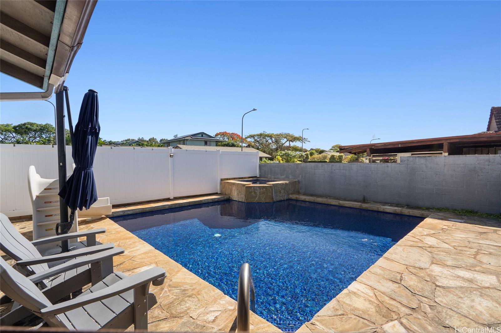 Back on market through no fault of the Sellers! Designed with comfort and practicality in mind, this well-maintained residence features generous living areas, ample storage, and a refreshing pool with an attached jacuzzi—perfect for relaxing or entertaining. A 44 panel leased photovoltaic system helps reduce energy costs. Enjoy the convenience of nearby shopping, dining, parks, and Mililani Town Center, along with highly rated public schools and Hanalani private school just minutes away. Commuting is easy with quick access to major highways, the H-2 freeway, and bus lines. Whether you're working from home or enjoying your private outdoor retreat, this property offers a rare opportunity to own a versatile and move-in-ready home in one of Central O?ahu’s most desirable communities. One or more photos have been enhanced.