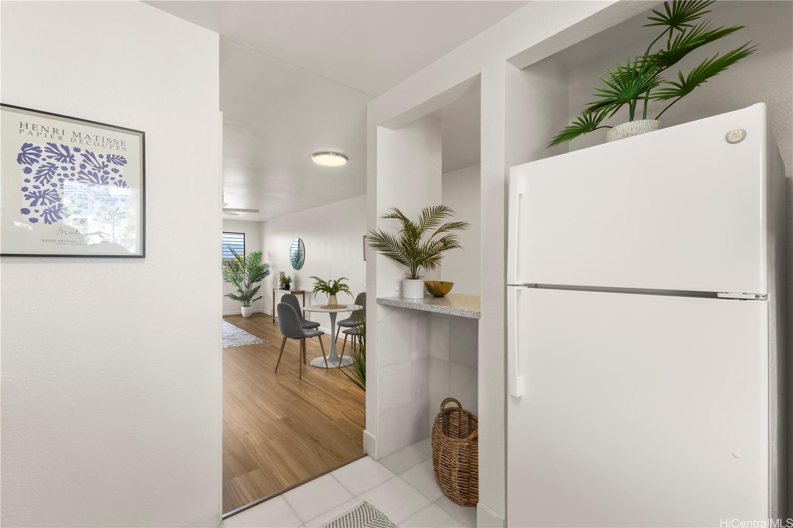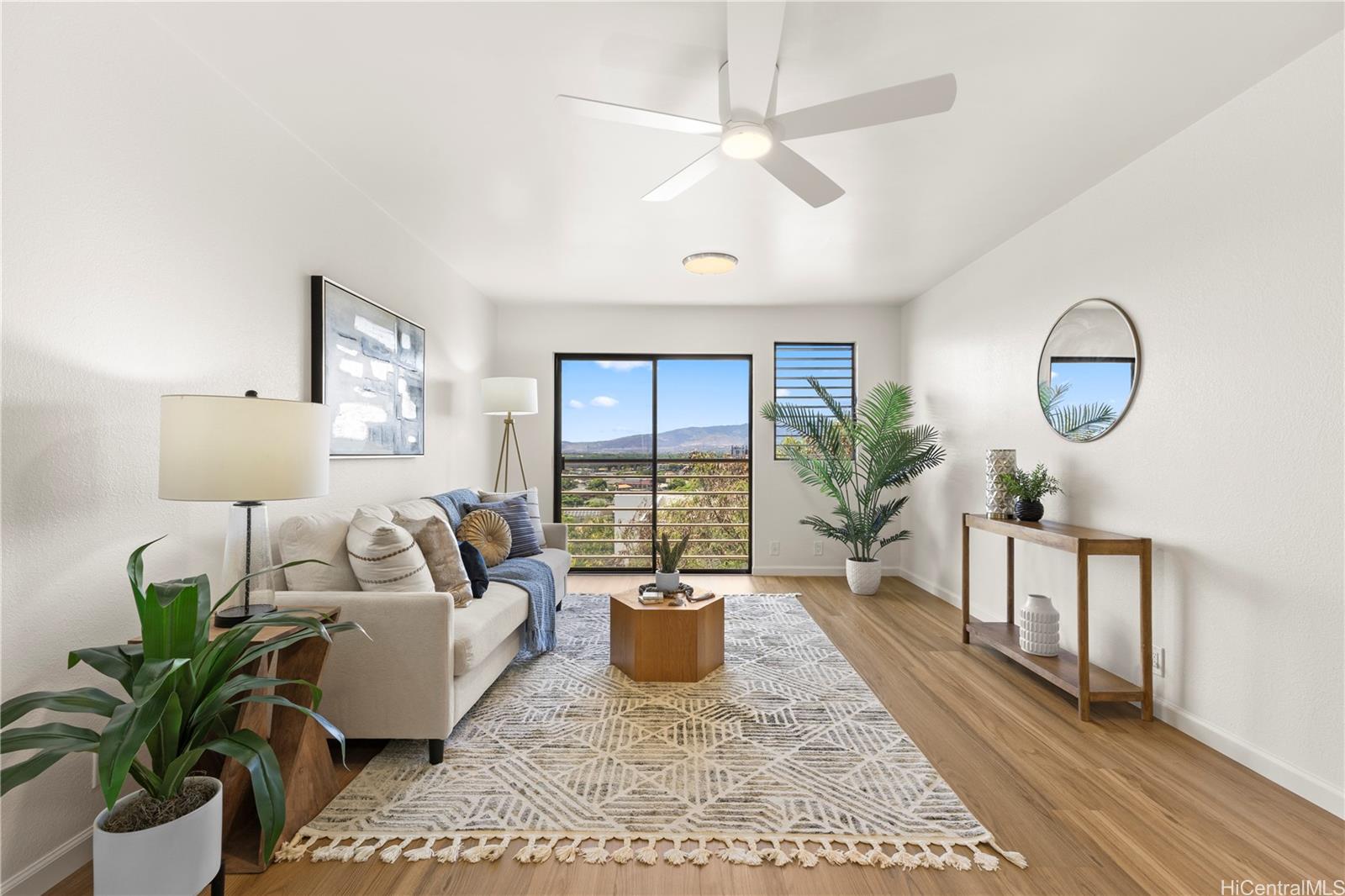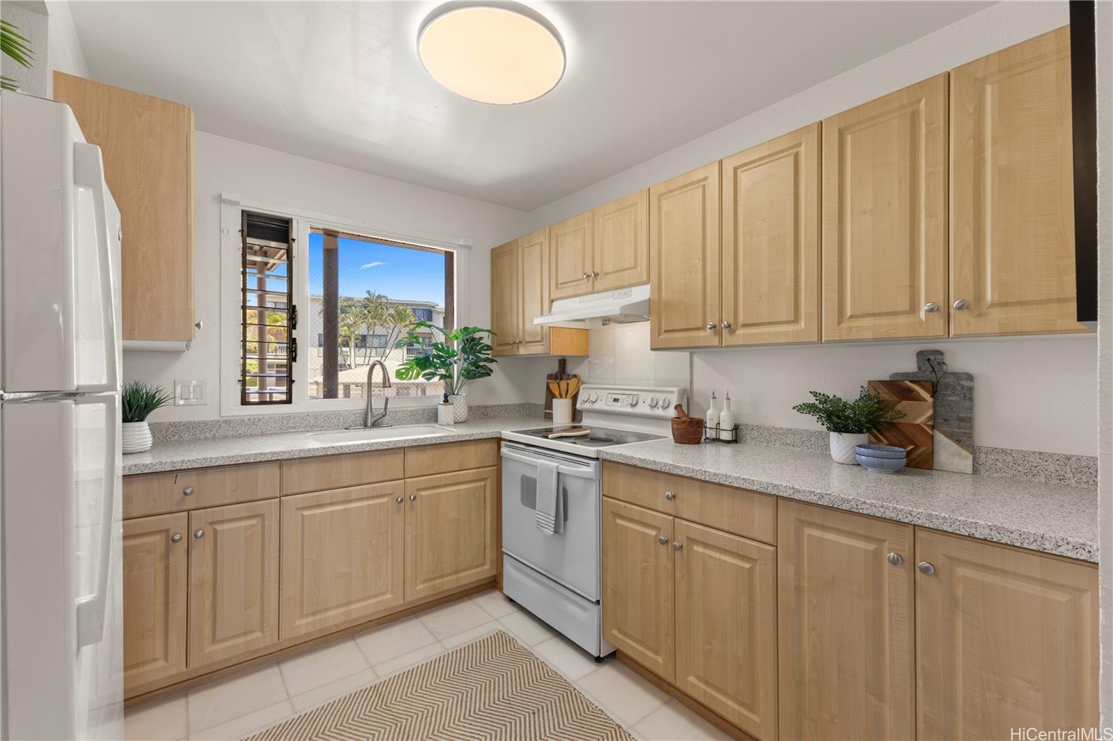 Welcome to Pearl Horizons, where modern design meets everyday convenience. This beautifully renovated 2-bedroom, 1-bath residence offers 794 sq ft of thoughtfully updated living space with classic & timeless finishes throughout. This residence also comes with two assigned parking stalls providing both convenience and practicality. Move-in ready, the home features a bright and open layout that feels fresh and inviting, highlighted by no popcorn ceilings for a clean, modern look. Enjoy the comfort of gentle cross breezes creating a light and airy atmosphere year-round while taking in the views of Pearl Harbor. Living at Pearl Horizons also means access to great community amenities, including a swimming pool and BBQ area - perfect for relaxing or spending time with friends. Conveniently located in the heart of Aiea just moments from Pearlridge Center, dining, schools, and freeway access. Whether you're a first-time homebuyer, investor or looking for a beautifully updated home in a prime location, this residence delivers the perfect blend of style, function and lifestyle convenience.