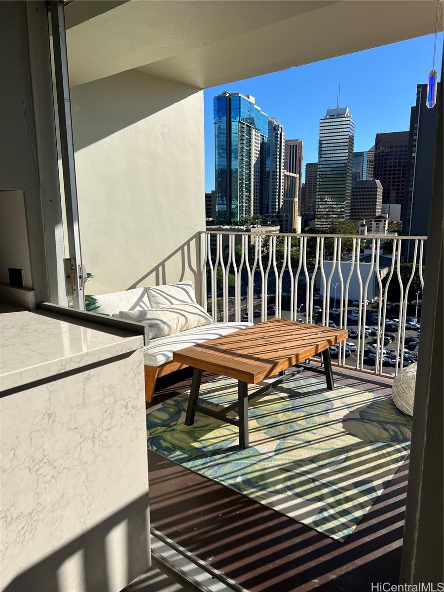 Enjoy breathtaking panoramic views of the mountains, ocean, sunset, and Aloha Tower from this spacious 674 sq. ft. corner unit on the 10th floor. Updated in 2021, the home features two bedrooms with window A/C units, a bright, breezy layout, and plenty of natural light. Experience refreshing trade winds and a comfortable, open living space perfect for relaxing or entertaining. This unit also includes 1 covered parking spot conveniently located right across the elevator, adding ease and security to your daily routine. Plenty of guest parking for your family and friends. Pet friendly for dogs under 45lbs and up to two cats.