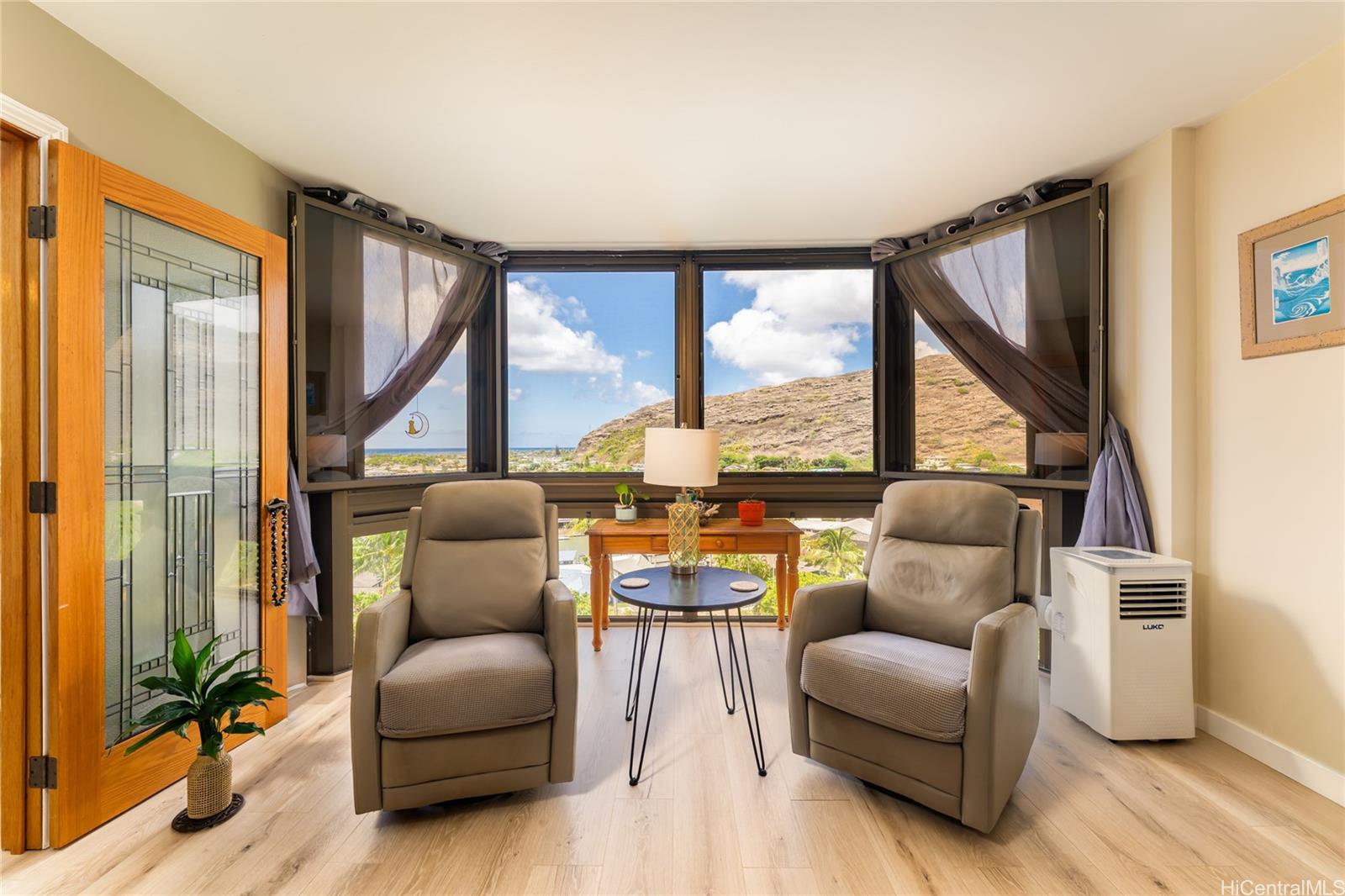 Come see the unique and classic updates to this Mauna Luan gem and make them yours. From the entryway and living room wainscoting to the wideplank floors and warm lighting, this unit shines and surpasses any found in this complex. As many familiar with Hawaii Kai know, no other condos have the resort like amenities of those found here. Whether enjoying your new living space, swimming under the waterfall or relaxing by the lush pools and surrounding walkways, this is the place to be. New appliances include microwave, refrigerator, kitchen sink/faucet and portable AC unit. Included under your HOA fee are 24/7 on site security, cable TV, hot water, internet service, water, barbeque, picnic areas, indoor party room, putting green, fitness area, racquetball courts, billiards, ping pong and car wash station. Easy to see with 2 hour notice or visit an open house on Sundays from 2-5.