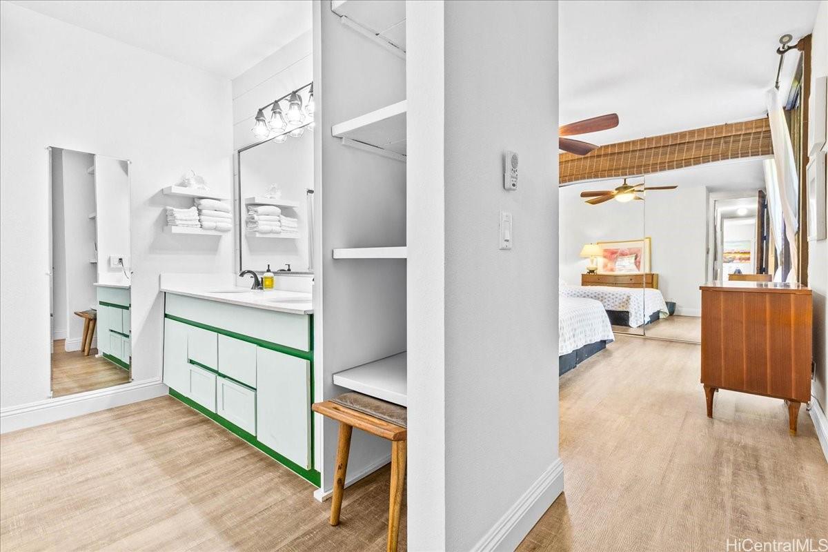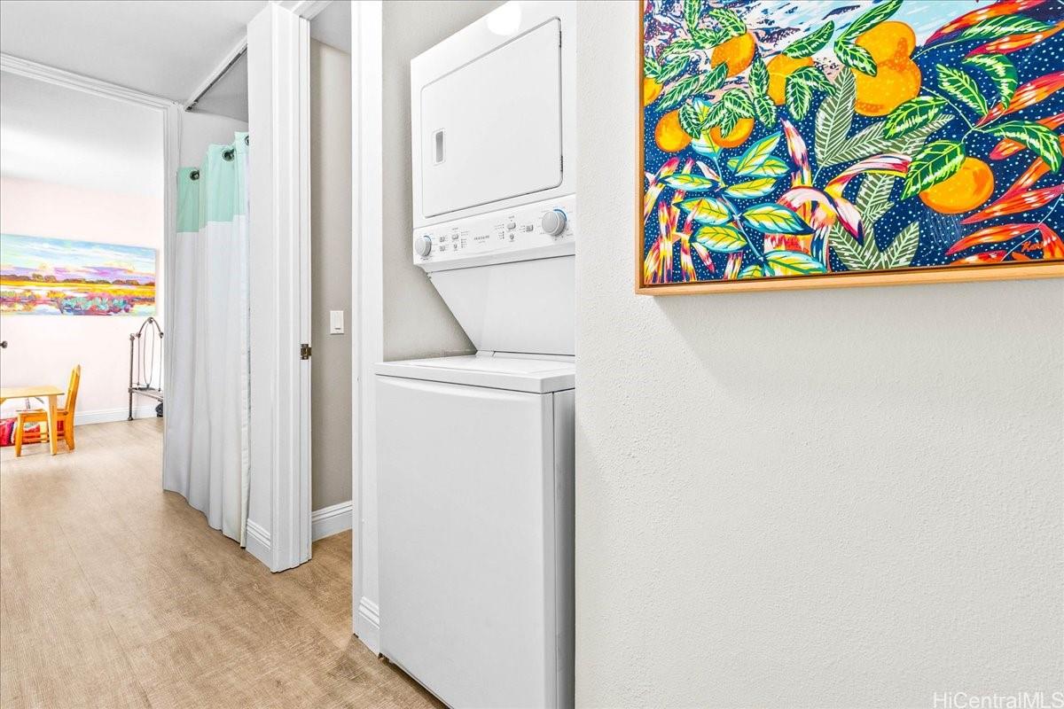 This beautifully updated 2-bedroom, 2-bathroom condo comes with 2 side-by-side, covered parking stalls and a storage unit, offering both comfort and convenience in the heart of Kailua. The home features an oversized 266 sq ft lanai overlooking lush green space and gardens—perfect for relaxing or entertaining.