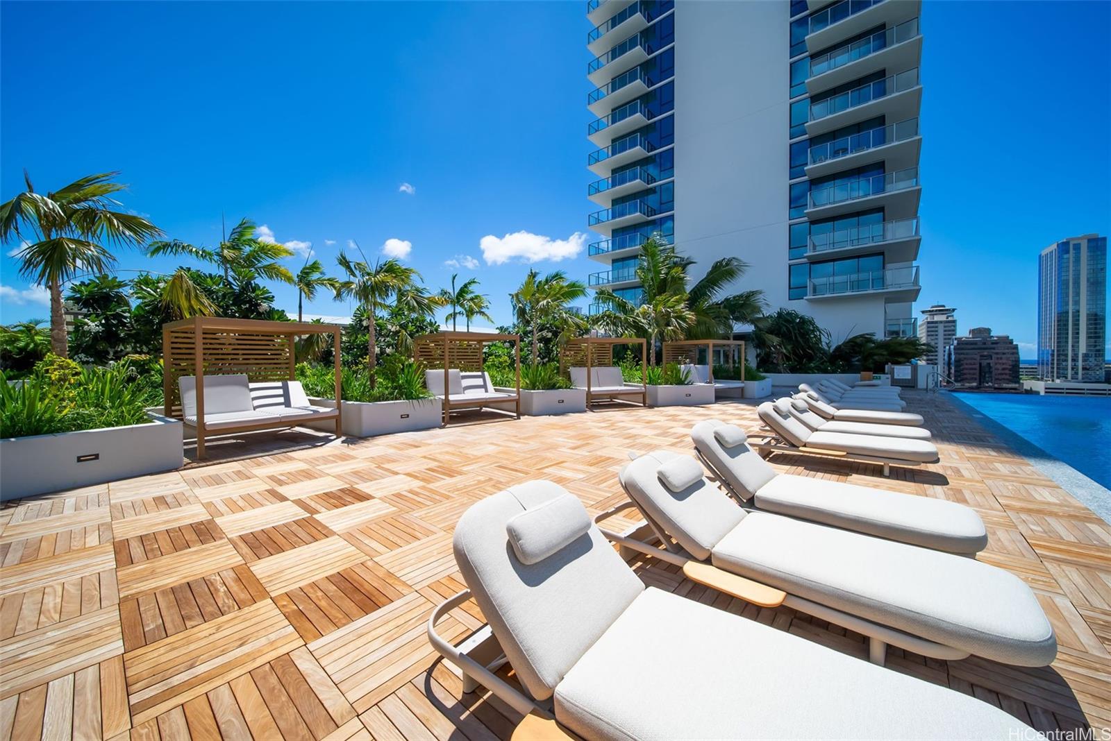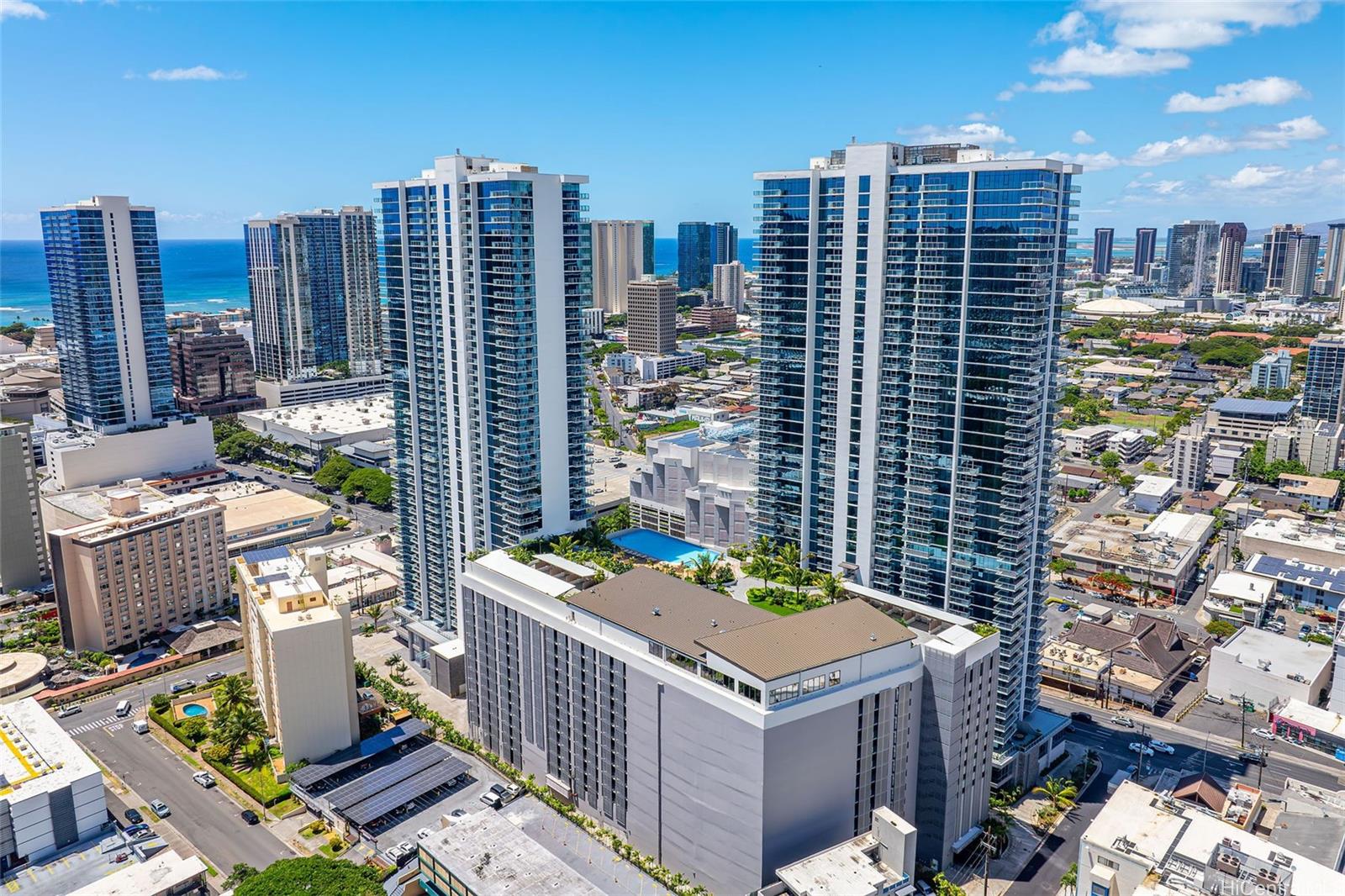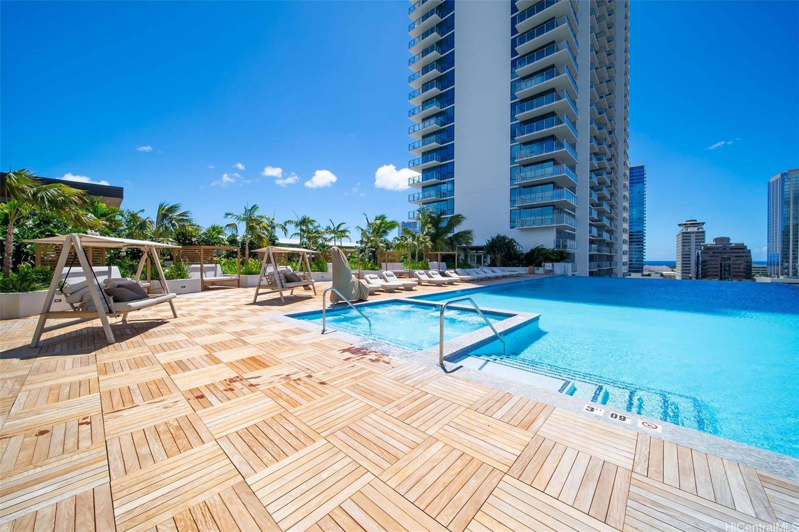 Welcome to The Park on Keeaumoku – Liona Tower, Honolulu’s newest address blending contemporary design with resort-inspired living. This never-lived-in one-bedroom, one-bath residence offers a sleek open layout with warm wood cabinetry, quartz countertops, luxury vinyl plank flooring, and floor-to-ceiling glass doors framing city views from your private lanai. The modern kitchen features stainless steel appliances and a spacious island that flows seamlessly into the living area, creating the perfect setting for both entertaining and everyday living. Enjoy resort-style amenities just beyond your door, including a sparkling infinity pool and jacuzzi with cabanas, BBQ lounges, a fully equipped fitness center and yoga studio, a theater room, a co-working space, and lush landscaped grounds. Additional conveniences include 24-hour security, guest parking, and a resident manager. Perfectly positioned in the heart of Honolulu, The Park on Keeaumoku offers walkable access to Ala Moana Center, dining, shopping, beaches, and all the energy of city life—while providing a serene retreat above it all. Experience a new standard of island living in this move-in ready home.