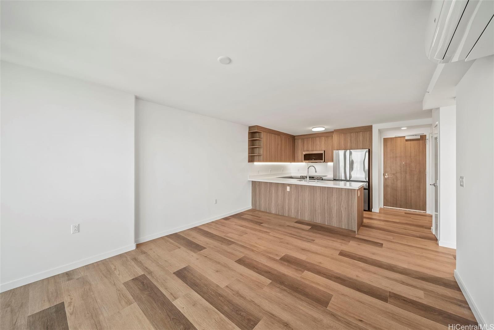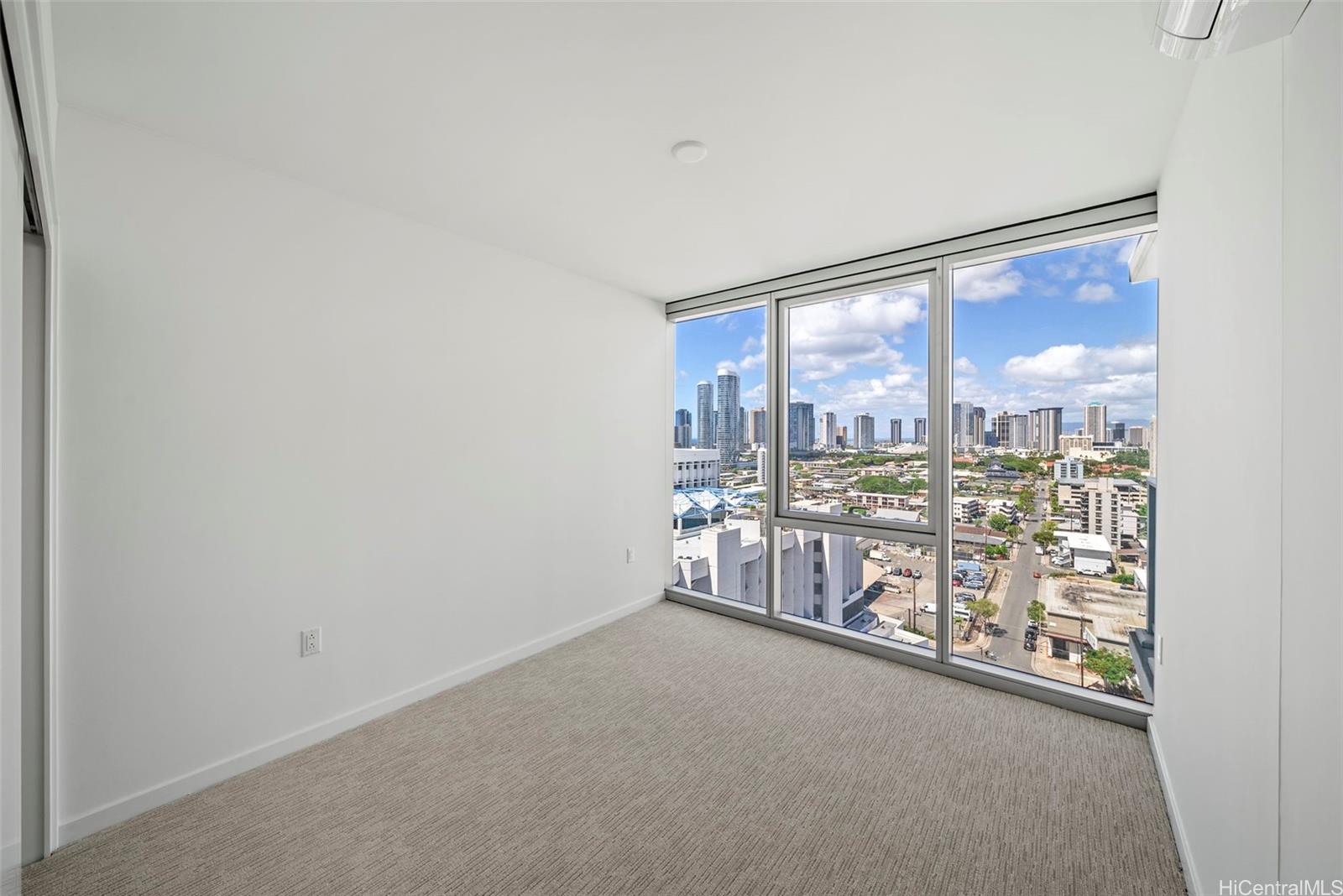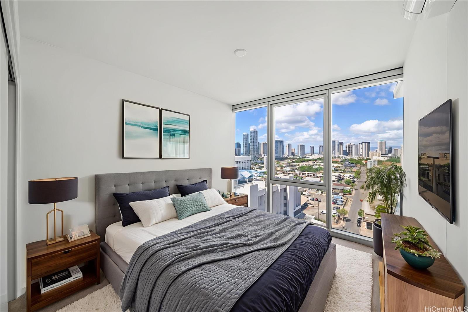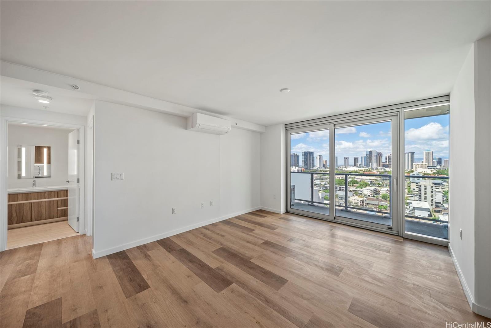 Welcome to The Park on Keeaumoku – Liona Tower, Honolulu’s newest address blending contemporary design with resort-inspired living. This never-lived-in one-bedroom, one-bath residence offers a sleek open layout with warm wood cabinetry, quartz countertops, luxury vinyl plank flooring, and floor-to-ceiling glass doors framing city views from your private lanai. The modern kitchen features stainless steel appliances and a spacious island that flows seamlessly into the living area, creating the perfect setting for both entertaining and everyday living. Enjoy resort-style amenities just beyond your door, including a sparkling infinity pool and jacuzzi with cabanas, BBQ lounges, a fully equipped fitness center and yoga studio, a theater room, a co-working space, and lush landscaped grounds. Additional conveniences include 24-hour security, guest parking, and a resident manager. Perfectly positioned in the heart of Honolulu, The Park on Keeaumoku offers walkable access to Ala Moana Center, dining, shopping, beaches, and all the energy of city life—while providing a serene retreat above it all. Experience a new standard of island living in this move-in ready home.