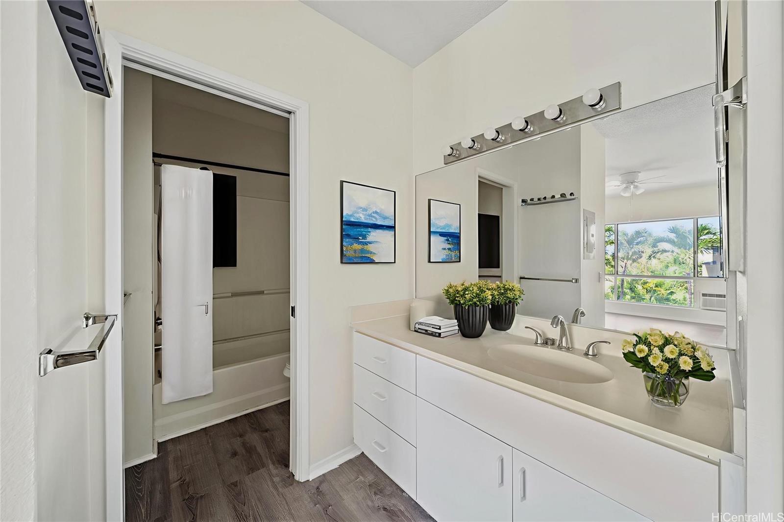 エヴァビーチのサンライズへようこそ!美しく整備された2ベッドルーム、2バスルームのコンドミニアムは3階に位置し、プライバシーが確保され、風通しも良く、上階に隣人がいないため、快適な住まいです。オープンコンセプトのリビングエリアは明るく居心地が良く、高い天井、耐久性のある高級ビニール板張りのフローリング、そして山の景色を望むプライベートラナイへのアクセスが備わっており、長い一日の終わりにリラックスするのに最適です。キッチンは機能性を重視して設計されており、十分な収納スペース、ガスコンロ、ステンレス製冷蔵庫、ビルトイン電子レンジ、食器洗い機を備えています。どちらのベッドルームもゆったりとした広さで、メインスイートにはプライバシーを確保するための専用バスルームが備わっています。その他の特徴として、2台分の駐車スペース(1台は指定駐車場、もう1台はカーポート)、室内洗濯機置き場、そして手入れの行き届いた共有グラウンドなどがあります。サンライズの居住者は、プール、バーベキューエリア、洗車場、レクリエーション施設などのアメニティをお楽しみいただけます。ショッピング、レストラン、学校、公園の近くの中心部に位置するこの住宅は、オアフ島で最も急速に成長している地区の 1 つに位置し、「第 2 の都市」カポレイからわずか数分の距離にあり、快適さと利便性を兼ね備えています。