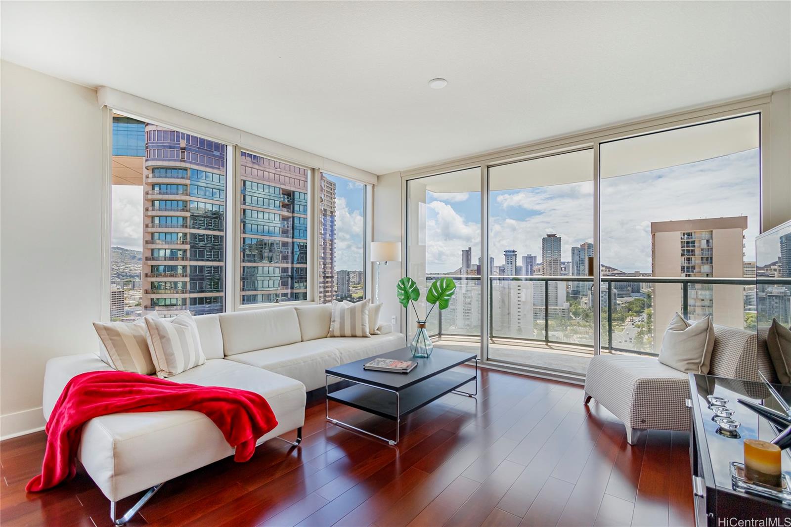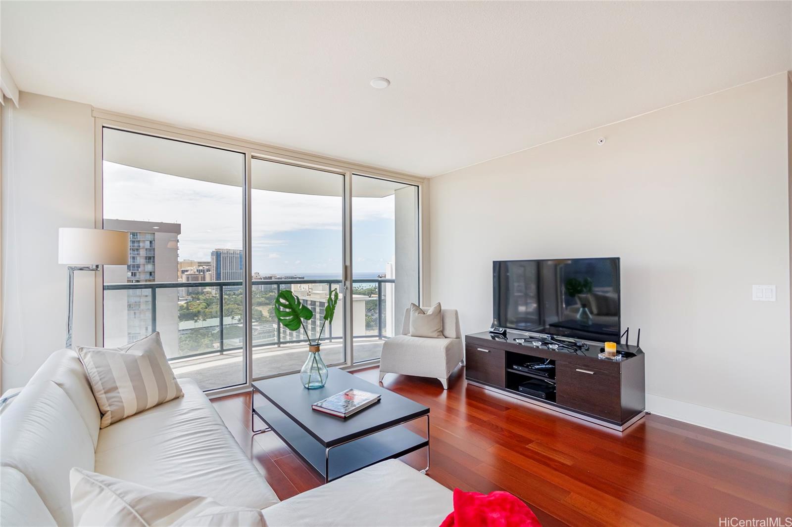 RARE 2-bed, 2-bath, highly desired CORNER unit—one of the largest layouts—offering BRIGHT, airy living w/EXTRA WINDOWS for your added comfort! Upgraded w/NEWER kitchen appliances, HARDWOOD FLOORS, carpet, CUSTOM window shades & water heater. EXPANSIVE lanai w/STUNNING OCEAN, Waikiki & mountain views. Prime Waikiki location near Ala Moana, beaches, dining & bus lines. RESORT-STYLE amenities: pool, jacuzzi, fitness, BBQ, rec room, bike/surf racks, dog park, garden, lobby fire pit, 24-hr concierge, guest parking & pet-friendly living.
