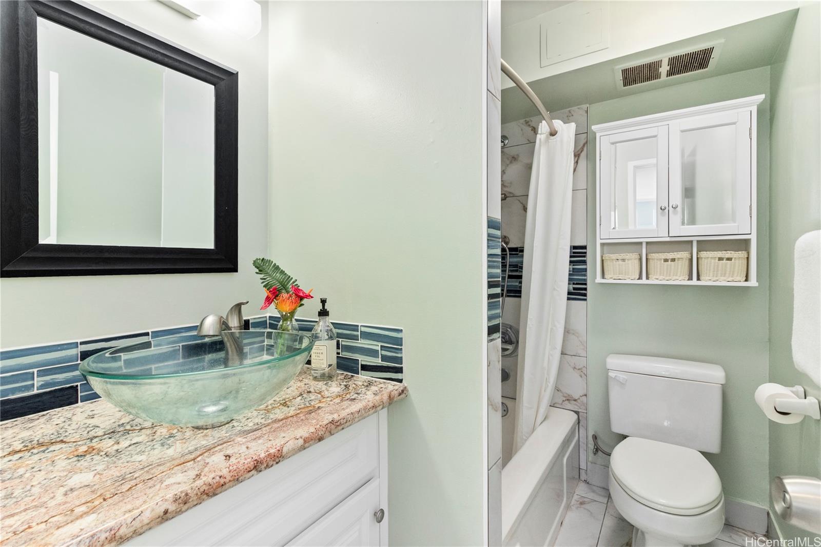 Enjoy ocean, mountain, city, canal & golf course views from this fully furnished, move-in ready condo. Easy to show! Experience the best of island living at Waikiki Townhouse, a secured, pet-friendly building in the heart of Waikiki with only four units per floor. All special assessments are paid off. No sandwich lease-Fee Simple ownership. This spacious corner/end 1BR/1BA has been fully renovated and includes a versatile bonus room with rolling shoji doors, perfect for a second bedroom or office space. Recent upgrades include popcorn ceiling removal, new windows/railings, fresh paint, luxury vinyl flooring, tiled bath and shower, updated kitchen and bath with new cabinets, countertops, backsplash, custom A/C housing units, and much more! Electrical panel will soon be upgraded and paid for by the Seller. The enclosed lanai extends the living space, while signature large windows showcase panoramic views. Relax on the rooftop deck with breathtaking 360° views, ideal for sunsets after a day at world-famous Waikiki Beach, just minutes away. Building amenities include a full-time resident manager, guest parking, and surfboard/bike storage. Assigned parking available via short waitlist.