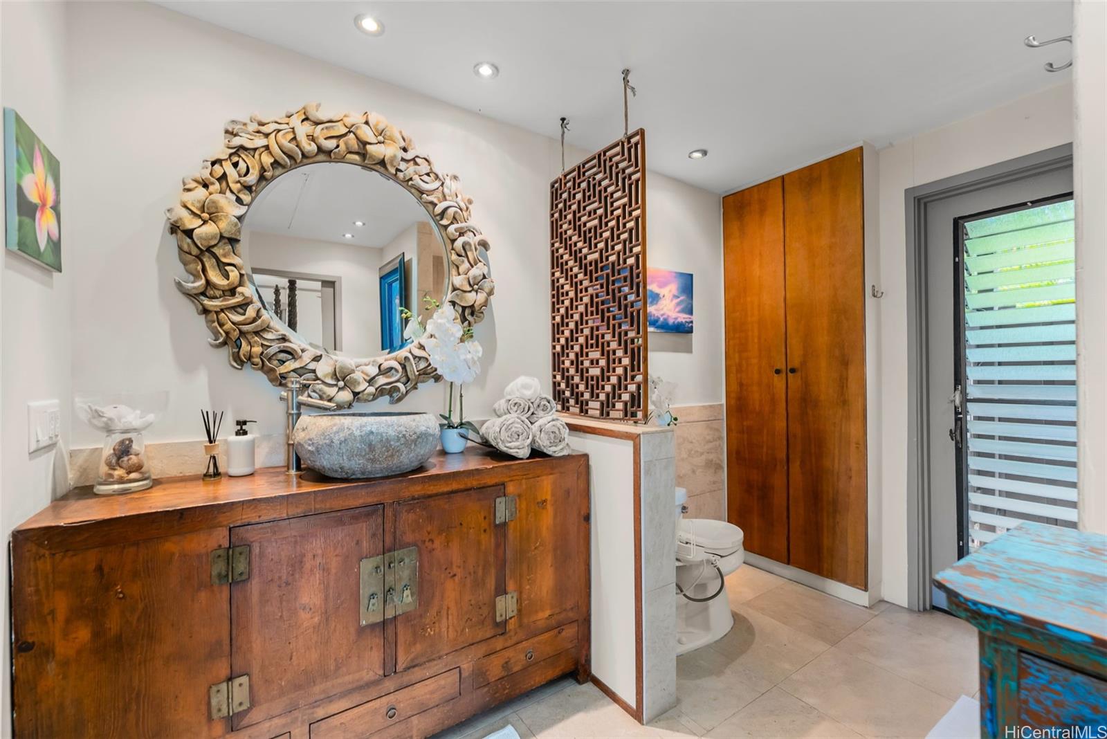 オアフ島ノースショアの広々とした静かな隠れ家、モクレイア・ビーチ・コロニー5Bのゲートコミュニティへようこそ。細部までこだわって改装されたこのユニットは、美しくリノベーションされたキッチンにほぼ新品の家電製品、全面的に電気設備のアップグレード、そして全室にシーリングファンを備えています。最新のスプリットエアコン、配管のアップグレード、そしてユニット内洗濯機/乾燥機が快適さと利便性を高め、トラバーチンタイルが全体に敷き詰められ、時代を超越したシームレスな流れを生み出しています。明るく居心地の良い開放的なレイアウトは、リラックスにもエンターテイメントにも最適です。このバンガローはかつて、地元の著名なアーティストがプライベートな隠れ家として利用していました。彼は静かなビーチウォークや近隣に生息する豊かな海洋生物から多くのインスピレーションを得ていました。緑豊かなトロピカルな景観と自然光に囲まれたこのバンガローは、カスタムメイドの窓装飾でプライバシーも確保されています。駐車場は裏口のすぐ外にあり、十分な駐車スペースがあります。また、屋外シャワーで海水浴の後も体を洗い流すことができます。 5B は、きれいな海と砂浜に直接アクセスでき、ハレイワの街からも数分の距離にあります。現代的な快適さと本物の島暮らしが融合し、フルタイムまたは週末の滞在に最適なサンクチュアリを提供しています。VA 承認済み。