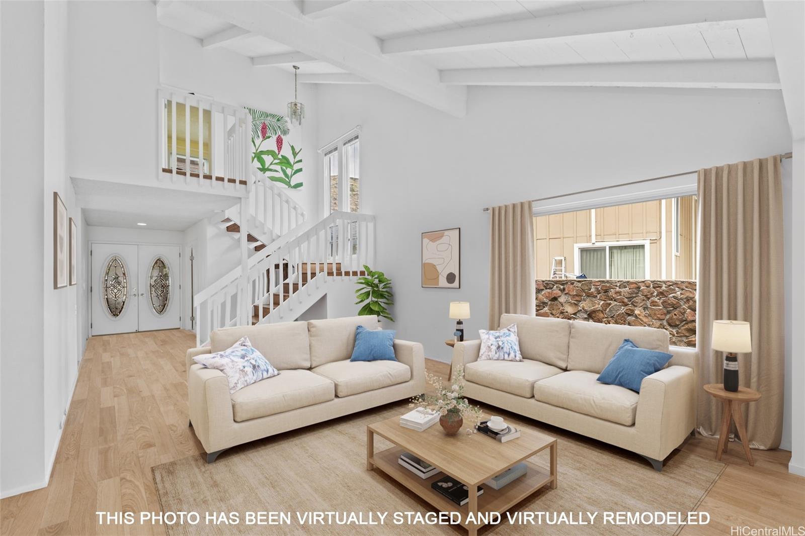 この4ベッドルーム、2.5バスルームの住宅は、約3,000平方フィートの内部居住空間を提供し、日常生活と娯楽の両方に余裕を持たせるために拡張された、よく設計されたスキッパーのフロアプランが特徴です。大きな窓のおかげで自然光がたっぷり入り、室内を明るくし、居心地の良い雰囲気を作り出します。よく手入れされ、まだ改装可能なこの住宅には、リラックスしたり、大切な人と時間を過ごしたりするのに最適な広々としたファミリールームがあります。追加のボーナスルームは、ホームオフィス、メディアルーム、プレイルームなど、あらゆるニーズに柔軟に対応します。外に出て、大きな屋根付きパティオは、バーベキュー、屋外ダイニング、または単にリラックスするのに最適なスペースです。豊かな緑と鮮やかなピンクのハイビスカスに囲まれたパティオは、島のライフスタイルにマッチしたプライベートで静かな空間を作り出します。さらに、プライマリースイートにはプライベートデッキがあり、朝のコーヒーを静かに楽しむことができます。ハワイカイの人気エリア、カラマバレーに位置するこの一戸建て住宅は、サンディビーチ、ハイキングコース、ショッピング、レストランにも近く、便利な立地です。*一部の写真はバーチャルステージングとリフォームが施されています。