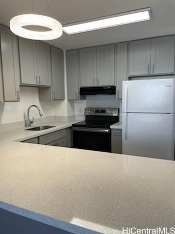 Beautifully remodeled in 2021, 1 bedroom 1 bath condominium in Kukui Plaza Diamond Head Tower with city, mountain and ocean views. Features shaker style wood cabinets in kitchen and bathroom vanity, quartz counter tops, tiled shower walls, refinished ceilings, and luxury vinyl flooring. Air conditioner, appliances and counter top microwave included. Enjoy the pool, BBQ areas or walk through the beautiful landscaped gardens. Located at the top of Downtown Honolulu near shops and eateries. Monthly public parking in the complex.
