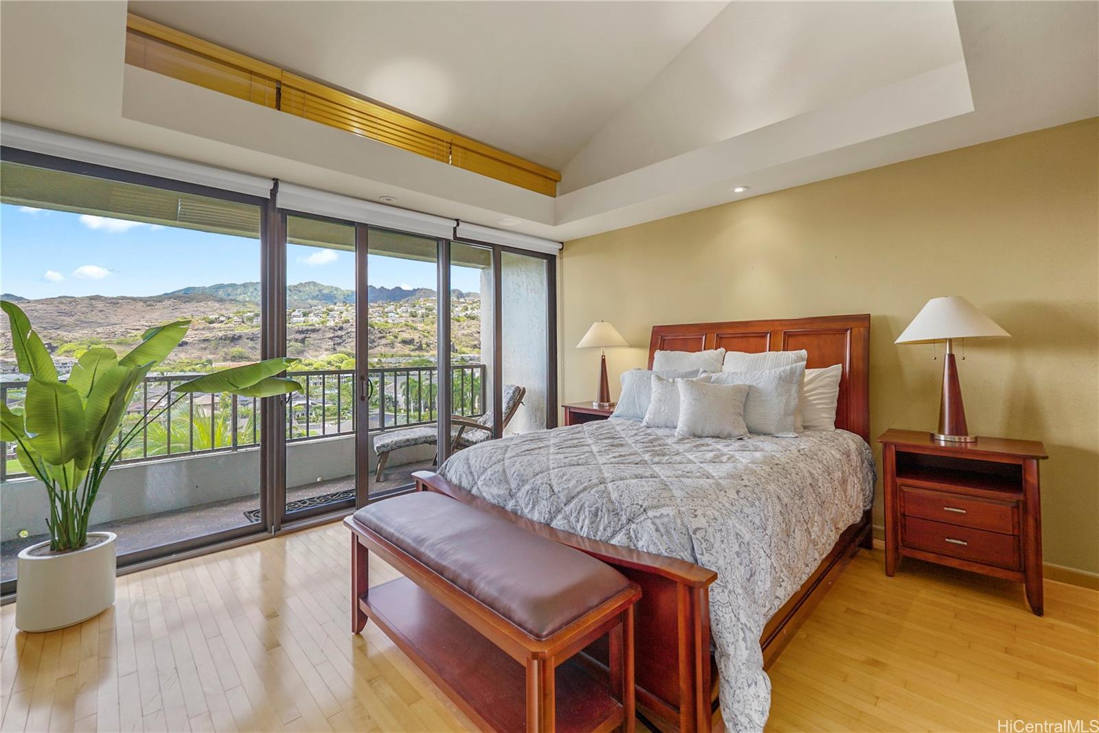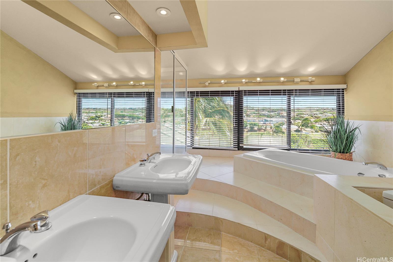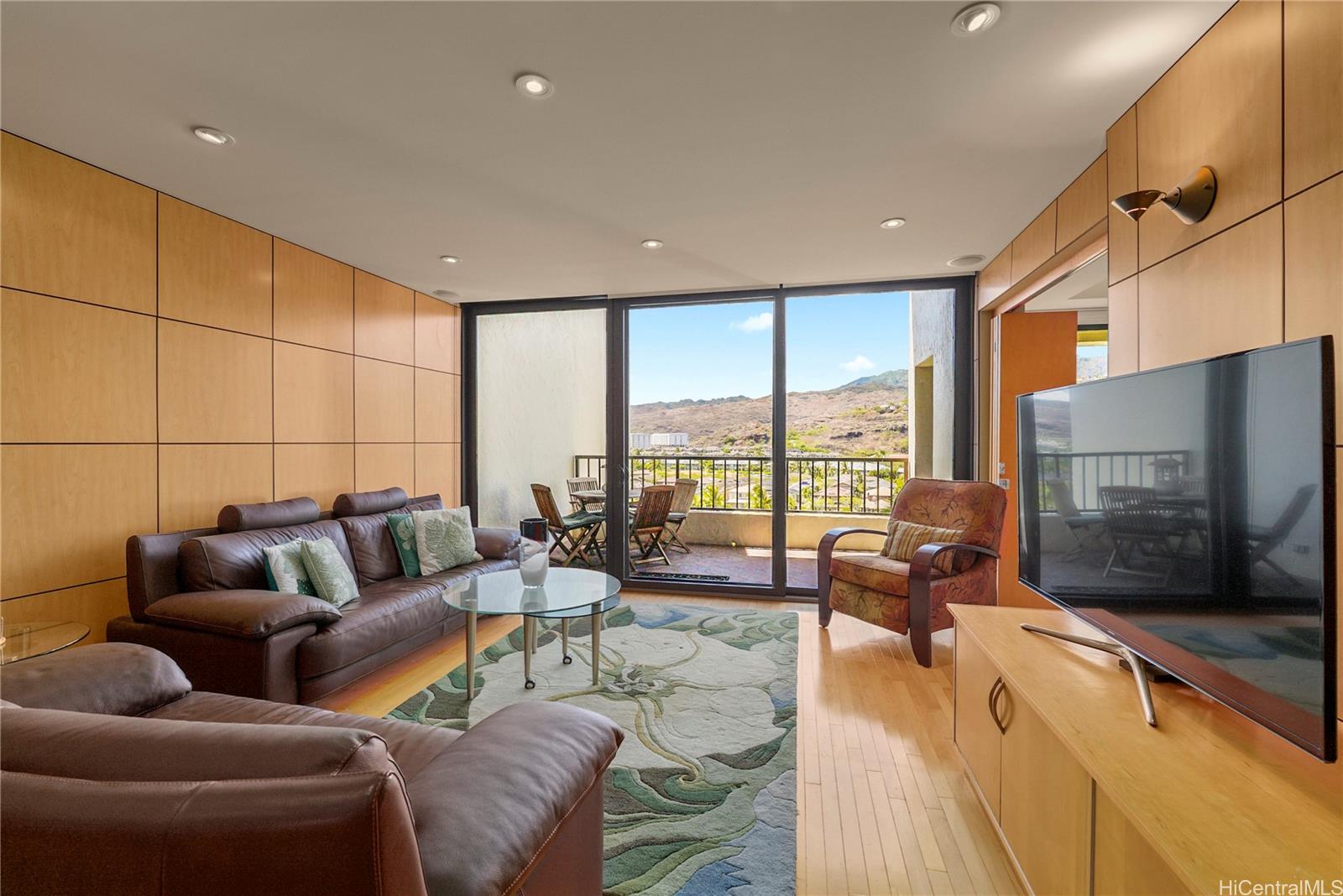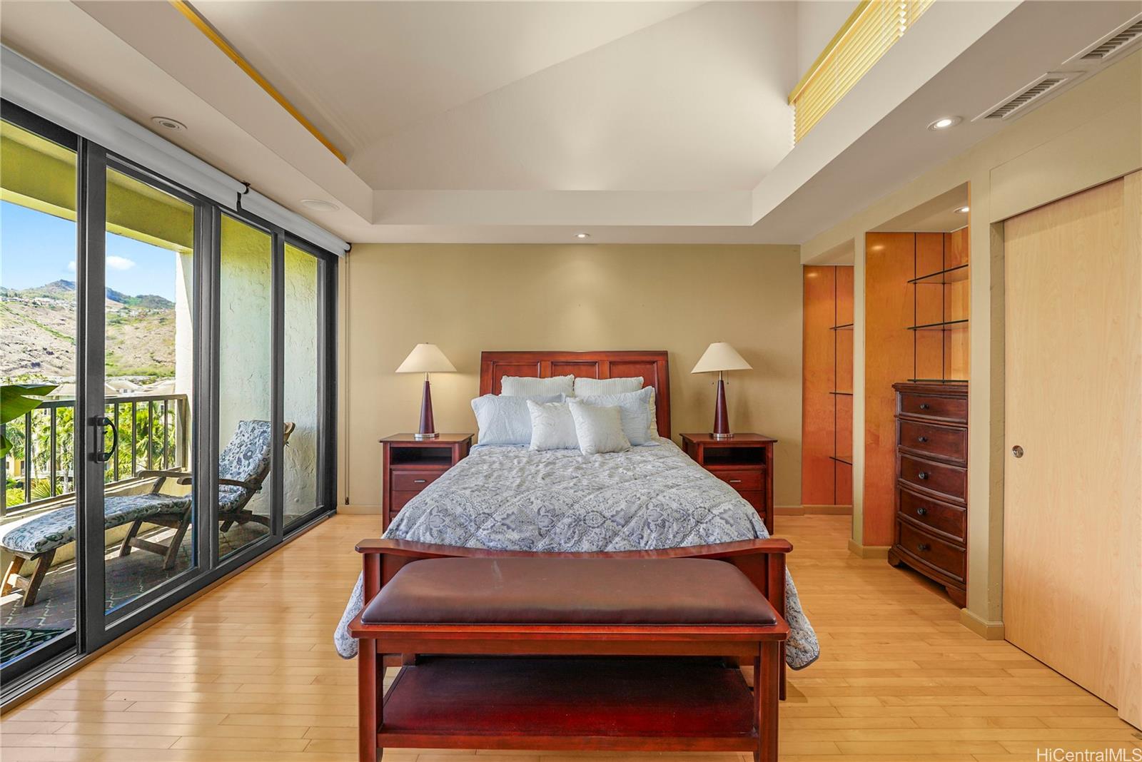 Penthouse living at the Esplanade in Hawaii Kai! This spacious 3-bedroom, 3-bath, two-story residence feels like a single-family home with marina and mountain views. The main level features an open-concept layout with a beautifully renovated kitchen, 2 upgraded full bathrooms, 2 bedrooms, new flooring, and newer sliding doors opening to the lanais for seamless indoor-outdoor living. Upstairs, the primary suite encompasses the entire second floor with a grand walk-in closet, expansive bedroom, and private lanai overlooking the stunning views. With 3 covered parking stalls plus additional storage, this rare offering combines convenience, comfort, and lifestyle in one of Hawaii Kai’s most desirable communities. Resort-style amenities include pool, fitness center, BBQ areas, boat slips, and more, perfect for waterfront living.