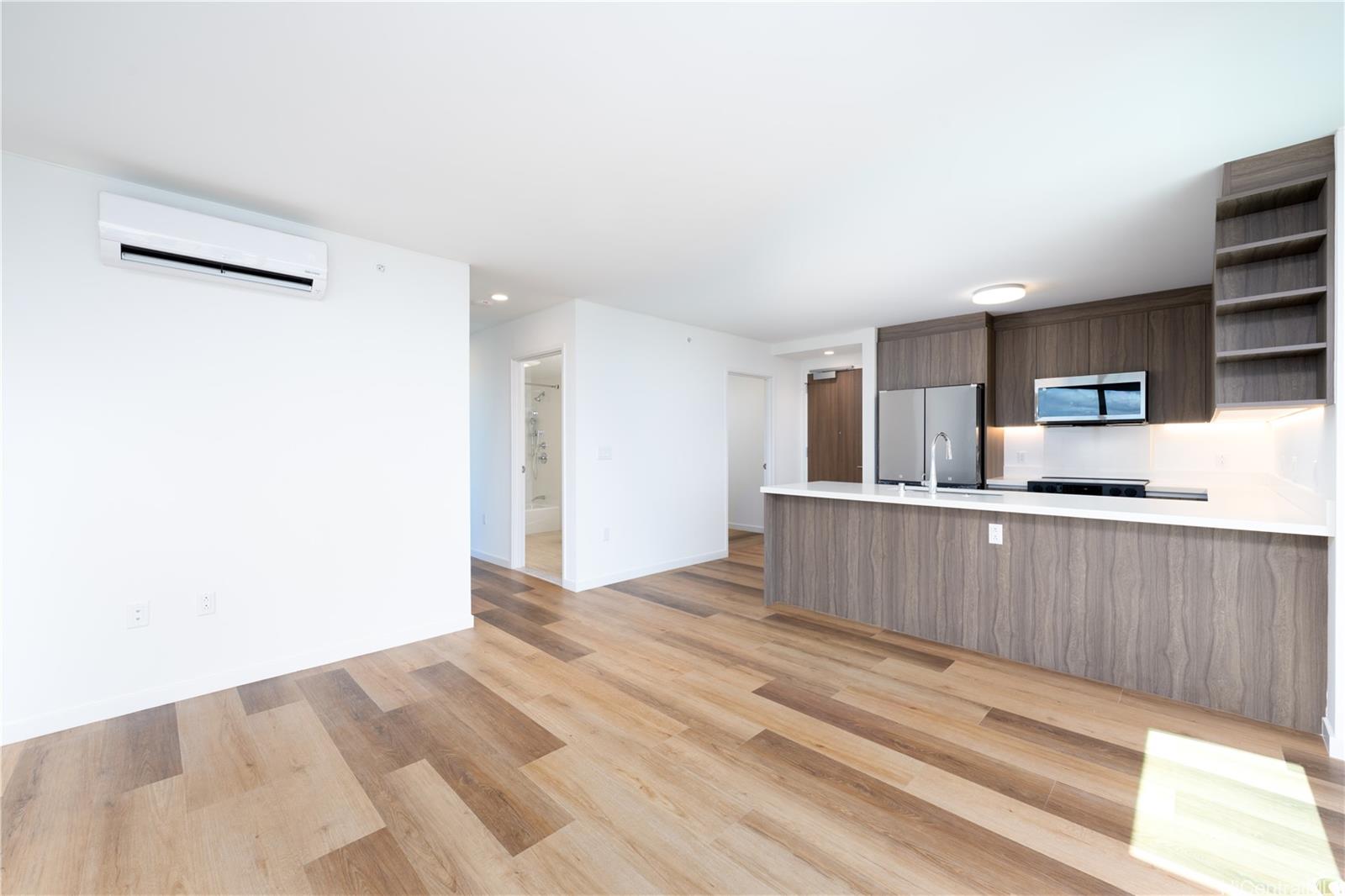 Welcome to The Park on Keeaumoku, Honolulu’s newest address where modern living blends seamlessly with island lifestyle. Ideally located just steps from Ala Moana Center, acclaimed dining, and vibrant entertainment, this is the place where convenience meets sophistication. This beautifully designed corner residence is a showcase of style and comfort. Expansive floor-to-ceiling windows draw in natural light while framing sweeping views of the ocean, city, and lush park below. The open-concept layout highlights refined finishes including quartz countertops, luxury vinyl plank flooring, and energy-efficient split AC in every room. A private lanai invites you to relax and take in Honolulu’s unmatched beauty. Life at The Park on Keeaumoku means resort-style indulgence every day. Refresh in the infinity pool and spa, entertain in private BBQ pavilions, or enjoy a film in the resident theater. Stay active in the fitness center, yoga studio, or sauna, and host memorable gatherings in stylish clubrooms designed for both intimate and large celebrations.