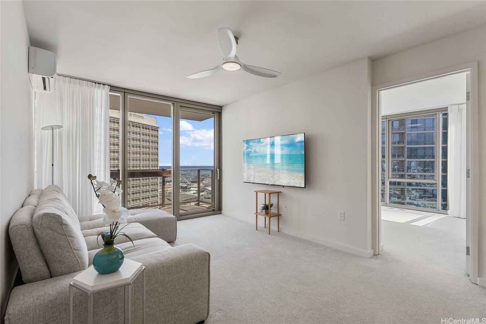 In a city full of new towers, SKY ALA MOANA WEST offers something rare, a luxury residence offering a peaceful retreat in the heart of Honolulu. Unit 1801, the premium “01” corner stack, offers blue ocean and city views through floor-to-ceiling windows, filling every room with light and inspiration. This 2-bed, 2-bath home is crafted for both beauty and function, featuring Bosch stainless steel appliances, quartz countertops, primary bathroom soaking tub, a walk-in closet, custom tailored drapery, and two covered parking stalls with storage. But what truly sets Sky Ala Moana apart is a healthy lifestyle at your fingertips: unwind in one of Honolulu's most expansive resort-style amenity deck with a pool, dedicated lap pool, spa, cold plunge, saunas, dog park, BBQ cabanas, and party rooms, plus on-site dining at Sera Hawaii and Michelin recognized Korean restaurant, Okdongsik. All within close proximity to Ala Moana Center and Ala Moana Beach Park. At Sky Ala Moana you don’t just buy a condo, you claim a vibrant, connected way of living that blends luxury, convenience, and wellness.