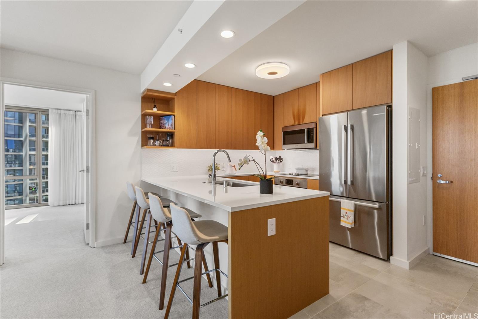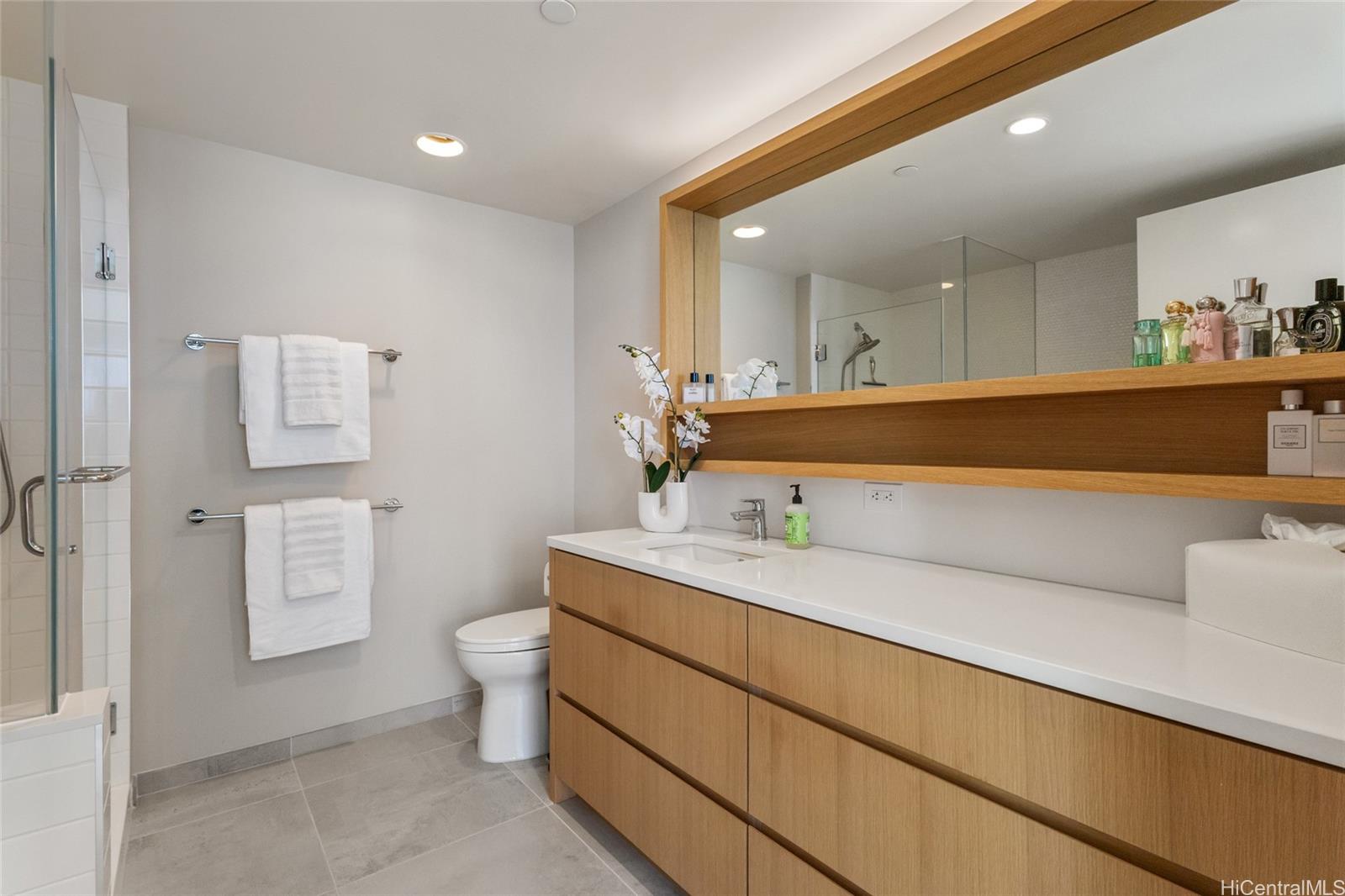 新しい高層ビルが立ち並ぶホノルルの中心にあって、スカイ・アラモアナ・ウエストは、他に類を見ないラグジュアリーレジデンスを提供しています。静かな隠れ家のような空間です。プレミアムな「01」コーナースタックであるユニット1801は、床から天井まで届く大きな窓から青い海と街の景色を一望でき、どの部屋も光とインスピレーションに満ち溢れています。ベッドルーム2室、バスルーム2室を備えたこの住宅は、美しさだけでなく機能性も兼ね備え、ボッシュ製のステンレス製家電、クォーツ製のカウンタートップ、メインバスルームには深いバスタブ、ウォークインクローゼット、オーダーメイドのカーテン、そして収納付きの屋根付き駐車スペース2台を備えています。しかし、スカイ・アラモアナの真の魅力は、ヘルシーなライフスタイルを手軽に実現できること。ホノルル屈指の広々としたリゾートスタイルのアメニティデッキには、プール、専用ラッププール、スパ、冷水プランジプール、サウナ、ドッグパーク、バーベキューカバナ、パーティールームなど、充実した設備が整い、ゆったりとくつろげます。敷地内には、セラ・ハワイやミシュランガイドに認定された韓国料理レストラン「オクドンシク」などのレストランがあります。アラモアナセンターとアラモアナビーチパークのすぐ近くです。スカイアラモアナでは、単にコンドミニアムを購入するだけでなく、ラグジュアリー、利便性、そしてウェルネスを融合させた、活気に満ちたコネクテッドライフを実現できます。