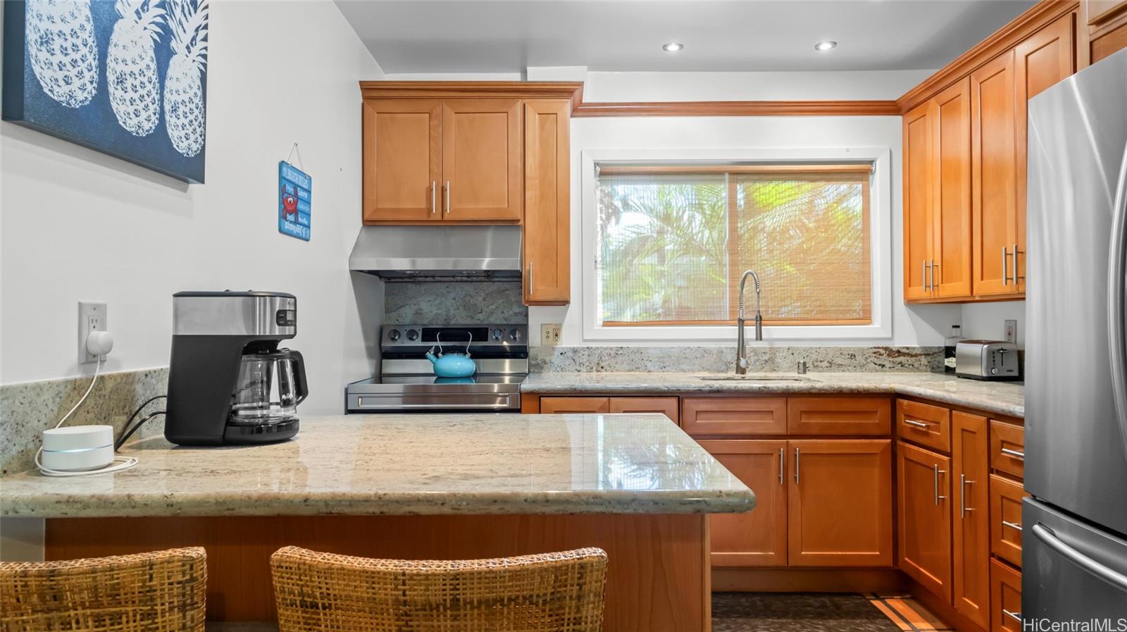 Discover the ultimate island lifestyle in this fully remodeled beach bungalow, just a short walk from Oahu’s world-famous shoreline. Inside, you’ll find warm Tigerwood engineered floors, spa-inspired marble bathrooms, a striking custom Lon Klein wood entry door, and sleek stainless steel appliances that elevate everyday living. Stay cool with split AC units in every room, or savor the trade winds outdoors with your private shower and spacious covered lanai—perfect for entertaining or winding down after a surf session. Move-in ready and designed for effortless comfort, this home is set in one of the North Shore’s most desirable neighborhoods, close to iconic surf breaks, dining, and all the charm this legendary coast has to offer.