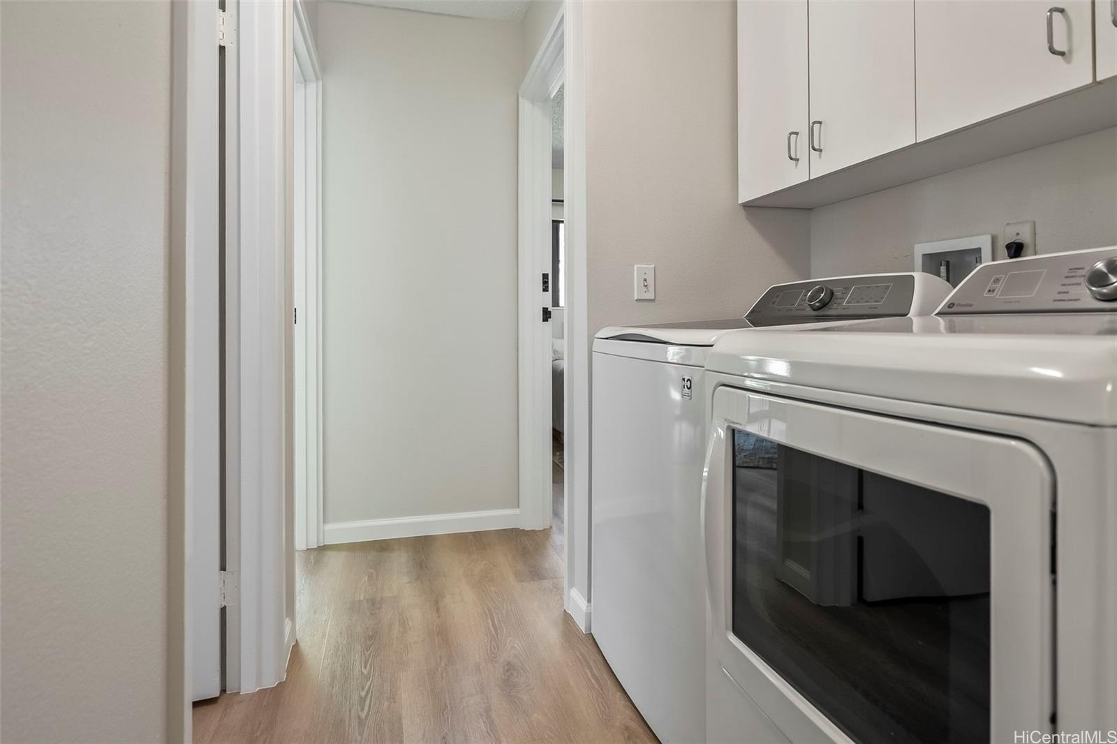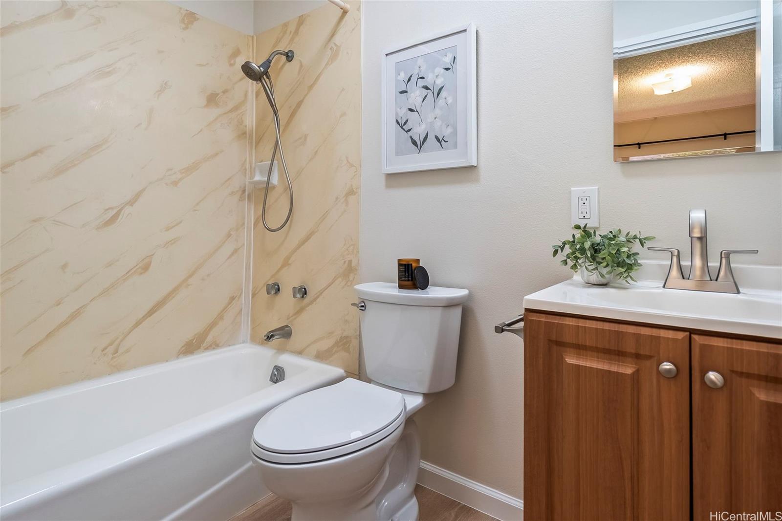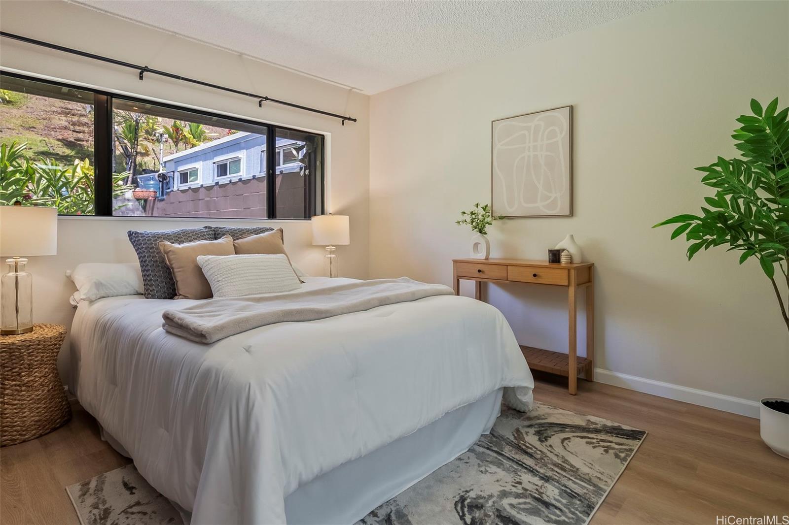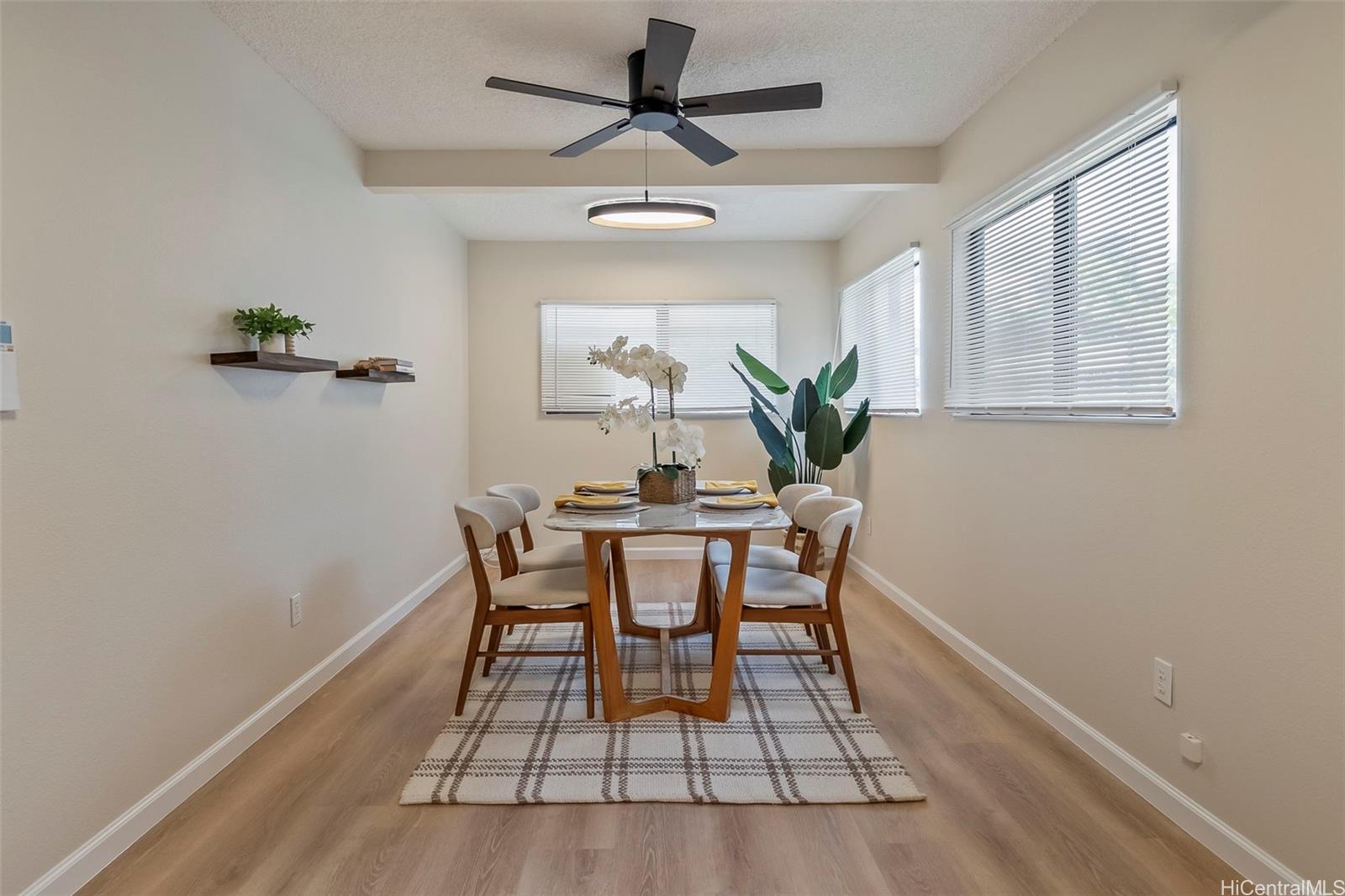 Welcome to Woodridge in Kaneohe—a community surrounded by the beauty and serenity of the Ko‘olau Mountains. This thoughtfully updated 3bd, 2ba attached home blends modern upgrades with the charm of island living. Inside, you’ll find brand new luxury vinyl plank flooring, fresh interior paint, upgraded ceiling fans and light fixtures throughout. Both bathrooms feature new vanity lights, faucets, toilets and shower heads. Energy efficiency is built in with 24 owned PV solar panels, helping to keep electricity costs low while running the split AC and window AC units. A spacious bonus room offers flexibility—perfect as a formal dining room, home office or playroom . Venture outside and discover your private, fenced-in yard, perfect for kids or animals to run around, along with a lush backyard retreat framed by breathtaking views of the Ko‘olau Mountains. Whether relaxing, gardening, or hosting gatherings, this outdoor space shines. Woodridge is known for its peaceful charm, convenient Kaneohe location, and access to nearby shopping, dining, schools, and outdoor recreation. Blending comfort, style, and island living, this home is move-in ready and waiting for its next chapter.