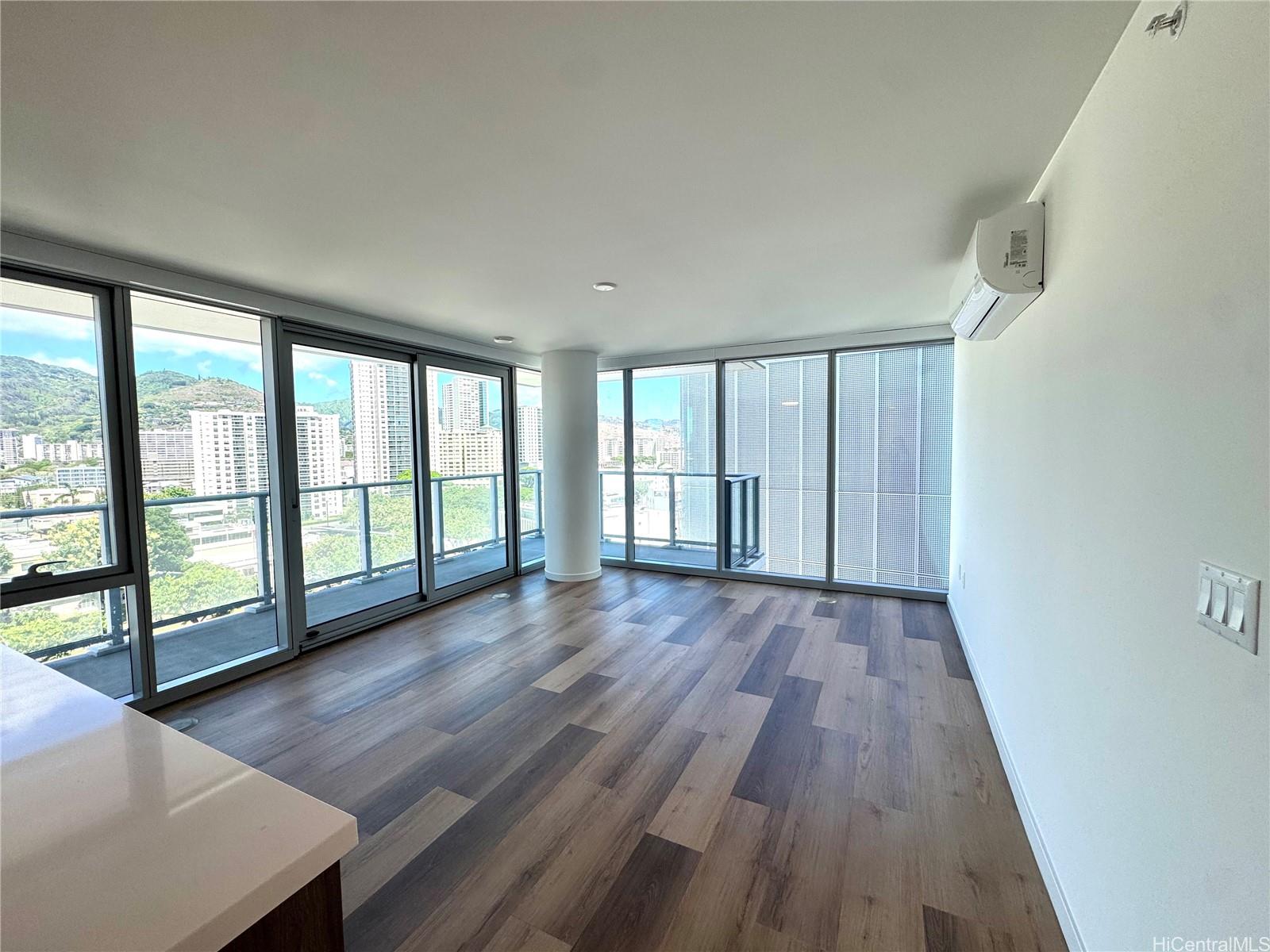 Located on the 12th floor of The Park on Keeaumoku, this brand new corner unit offers a spacious 751 sq ft one-bedroom, one-bathroom layout with one parking stall and an expansive 164 sq. ft. wrap around lanai for ideal indoor outdoor living. This highly desired '11 stack is the biggest unit out of all the one bedrooms. The residence is finished with brand new Samsung appliances, a split LG A/C system, upgraded motorized blinds in the living room and bedroom, and a walk-in closet. Residents can enjoy access to resort-style amenities including an infinity pool on the 14th floor, multiple BBQ stations, sauna, fitness center, yoga room, private movie theatres, and three large clubrooms. This home is the perfect combination of modern comfort and convenience in a location close to shopping, dining, and everything Honolulu has to offer.