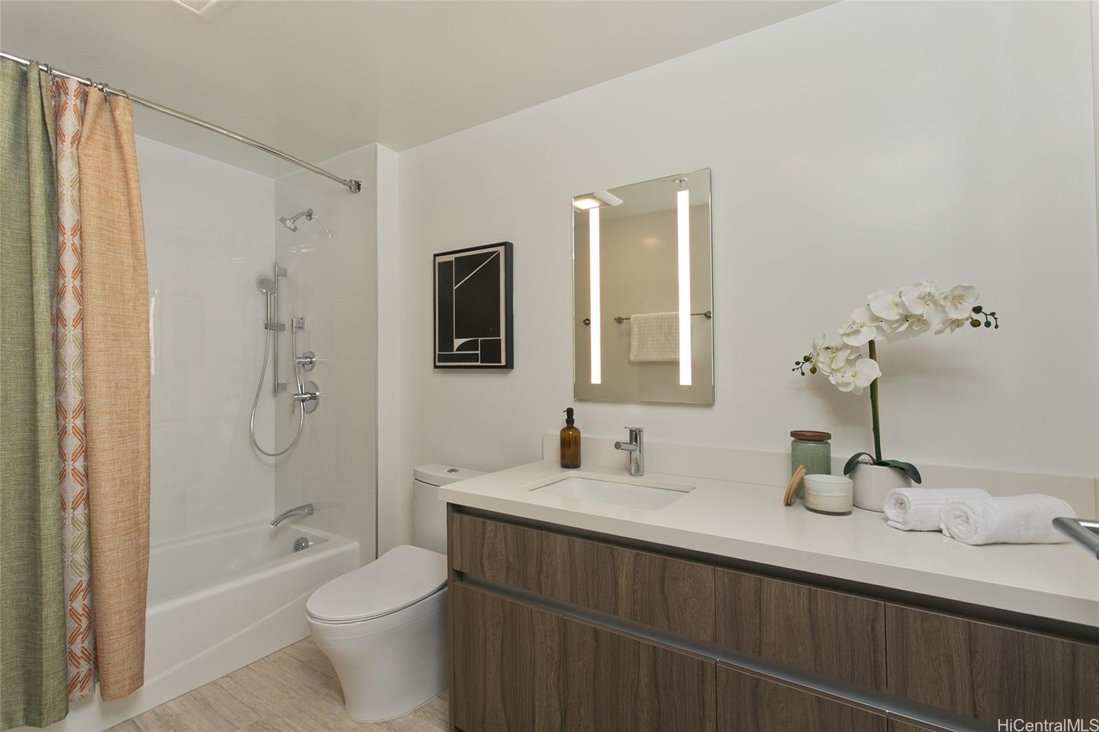 Experience modern island living in this beautifully staged 1-bedroom, 1-bath residence on a high floor at The Park on Keeaumoku. From your private lanai, enjoy breathtaking views of Diamond Head, the ocean, and Honolulu’s city lights. The open-concept layout is filled with natural light through floor-to-ceiling windows, while the sleek kitchen boasts quartz countertops, stainless steel appliances, and soft-close cabinetry. Resort-style amenities include an infinity pool and spa, fitness center with sauna and yoga studio, movie theater, BBQ cabanas, and co-working lounges. With 24-hour security, secured parking, EV charging, and a prime Midtown Ala Moana location near shopping, dining, and nightlife, this home offers the perfect blend of convenience, comfort, and lifestyle.
