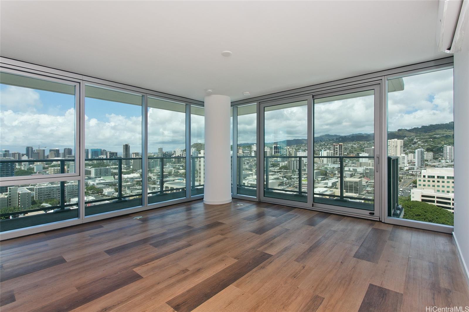 Enjoy stunning wrap around views of Honolulu (mountain, city and partial ocean) from this never lived in, brand new 22nd floor, 2-bedroom, 2-bath corner unit with a spacious wraparound lanai - the perfect setting for morning coffee or evening sunsets. This unit features upgraded luxury vinyl flooring that flows from the living room area into both bedrooms, creating a cohesive space throughout. Inside, an open-concept floor plan with floor-to-ceiling windows fills the living spaces with natural light. As part of Honolulu's newest lifestyle destination, residents enjoy resort-style amenities (infinity pool, spa, BBQ grills, gym, etc), secure entry, and an unbeatable location - just minutes from Ala Moana Center, Waikiki, and some of the island's best dining, shopping, and entertainment.