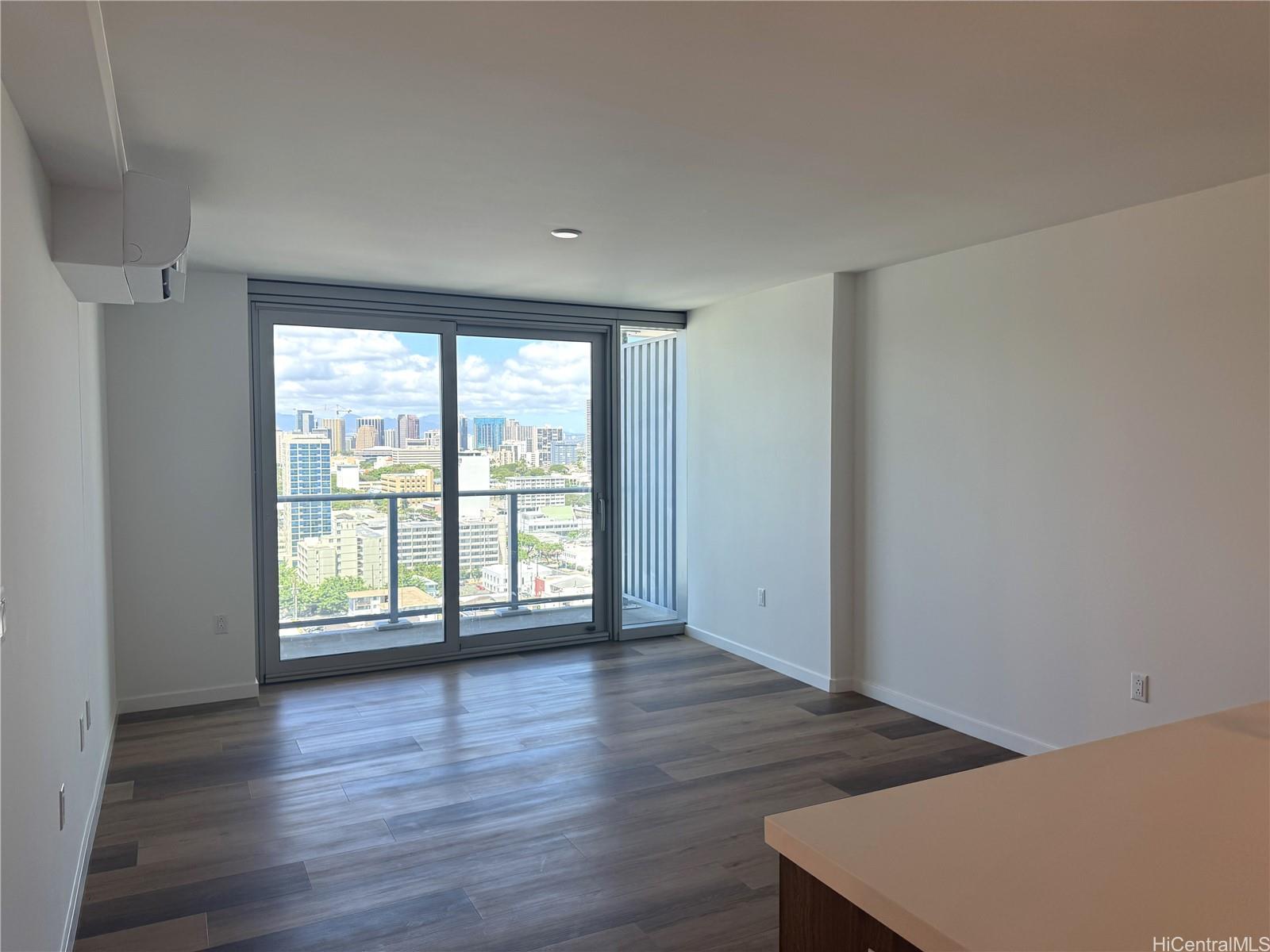 Welcome to the Park on Ke'eaumoku, Honolulu's newest condominium. Be the first to occupy this spacious one bedroom, one bath unit in the Liona Tower with one covered, assigned parking stall. Luxury vinyl plank flooring in the living room and kitchen, comfortable carpet in the bedroom, split AC in both the living room and bedroom. Kitchen features include: Quartz countertops, contemporary hardware, stainless steel appliances and modern plumbing fixtures. Floor to ceiling windows allow the natural light into the unit and enjoy the spacious 70 sq ft lanai, offering city and ocean views. You will be impressed by the building's amenity deck which features a fitness center, co-working space, club rooms, infinity pool, sauna, movie theater and private BBQ pavilions. Ideal location, minutes awa from Ala Moana Center, Ward Village, Walmart and various dining options, retail and entertainment. Don't miss out on this opportunity!