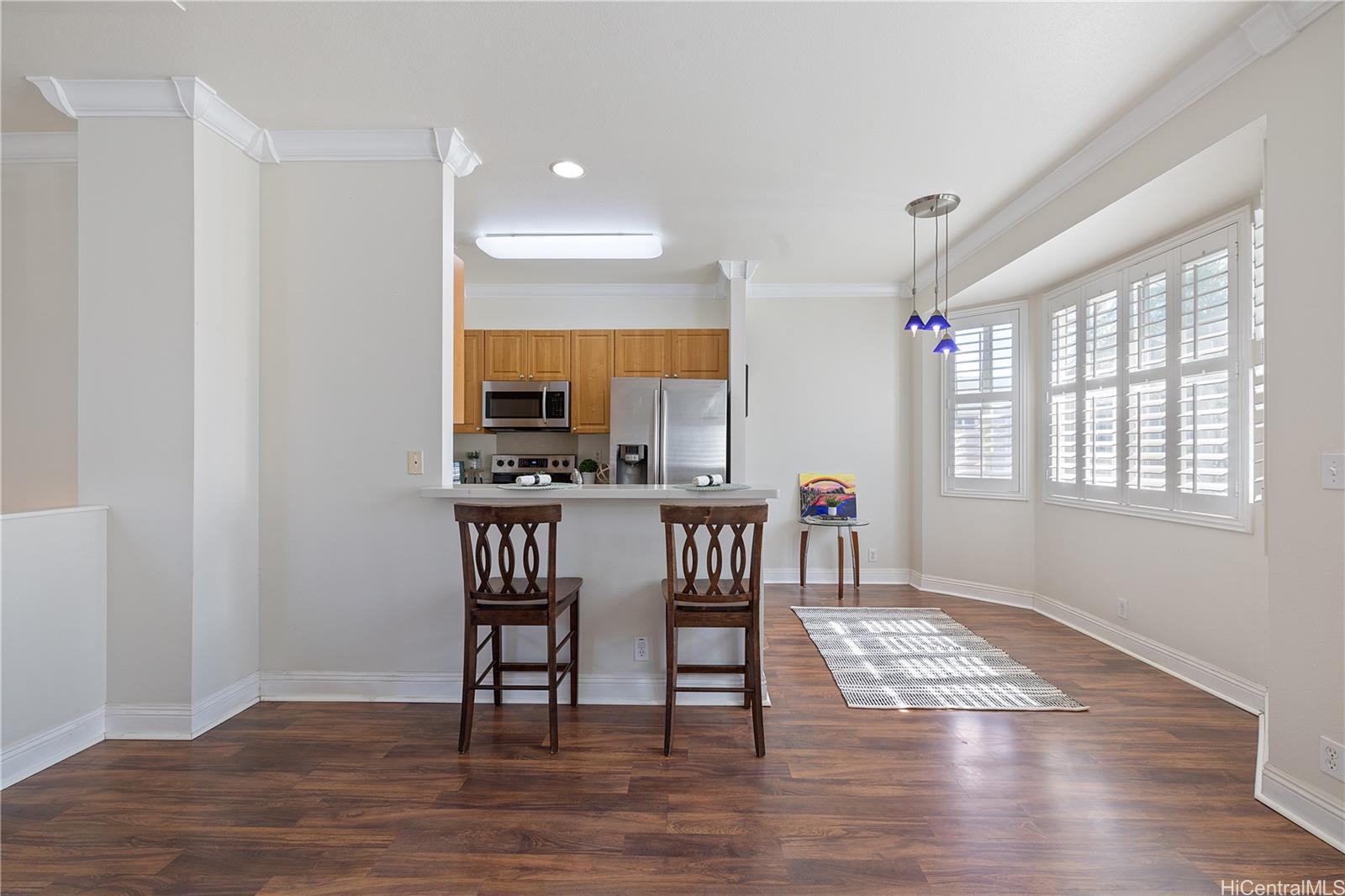 This rare offering presents a detached single-family home thoughtfully designed for comfort and flexibility. A primary suite on the ground floor provides effortless access from the garage to the bedroom and onward to the yard—an inviting access to your own outdoor space. Second Floor offer 2 bed 1 bath open kitchen layout with additional features including plantation shutters, an open-concept kitchen, refined crown molding, and a maintained interior style.