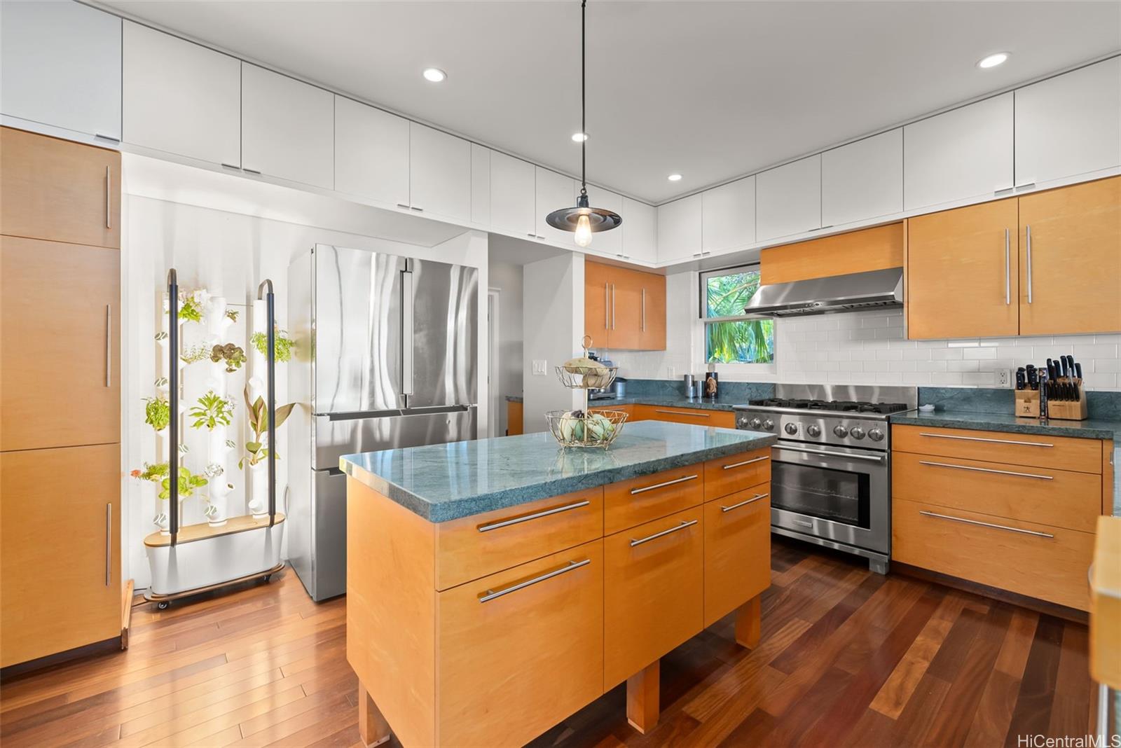 NEW LISTING!! Unobstructed, panoramic ocean and mountain views await you from this gracious 5 bdrm/2.5 bath home PLUS a separate studio/1 bath guest quarters in highly desirable Pacific Heights. Steeped in classic island charm, the main home features an open floor plan that flows seamlessly to a spacious covered lanai, beautiful wood floors, and stunning views. The chef’s kitchen includes a gas range and stainless-steel appliances. Additional highlights include new carpet, engineered and hardwood flooring, and multiple outdoor areas ideal for relaxed indoor/outdoor living. The separate guest quarters offers vinyl plank flooring, a large covered deck, and a private entry. The exterior of both dwellings has been freshly painted, and the expansive backyard provides the perfect setting for relaxation. Experience the rare blend of comfort, charm, and sweeping island vistas that make this property truly special. A must-see!