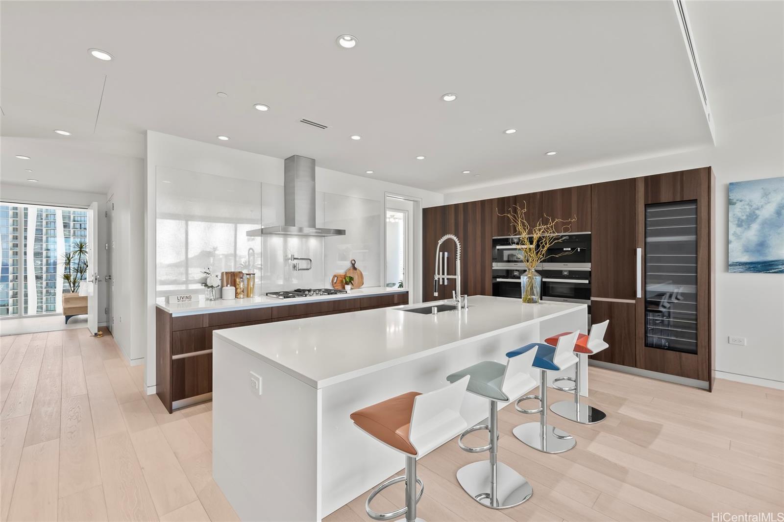 ワイエア 2006 – 四方八方の景色と洗練されたアイランドライフ。ワードビレッジのフラッグシップタワー、ワイエアで、比類なきラグジュアリーをご堪能ください。東向きの3ベッドルーム、2.5バスルームを備えたこの人気のレジデンスは、ダイヤモンドヘッド、太平洋、マリーナ、緑豊かな山々、そして活気あふれるホノルルのスカイラインの息を呑むような四方八方の景色をお楽しみいただけます。プライベートな玄関ホールから入ると、9フィート6インチの天井高、堅木張りの床、そして息を呑むような眺望を隅々まで縁取る床から天井までのガラス窓を備えた、広々としたエレガントなデザインの邸宅が広がります。シェフズキッチンには、ミーレ社の調理器具、ガスコンロ、ヨーロッパ風のキャビネット、ワインセラーが完備されています。メインスイートには、独立型バスタブとオニキス仕上げが施されたスパ風のバスルームが備わっています。ワイエアの世界クラスのアメニティには、インフィニティエッジプール、カバナ、バーベキューパビリオン、フィットネスセンター、ゴルフシミュレーター、シアター、ゲストスイート、そしてオーナー専用のサンセットラウンジなどがあります。コンシェルジュサービスが、さらに上質な体験をお届けします。アラモアナビーチパーク、ホールフーズ、そしてホノルル屈指のレストランやショッピングが楽しめるアラモアナセンターからもすぐという理想的な立地にあるワイエア2006は、洗練さと快適さ、そしてアイランドライフスタイルが融合した特別な空間です。