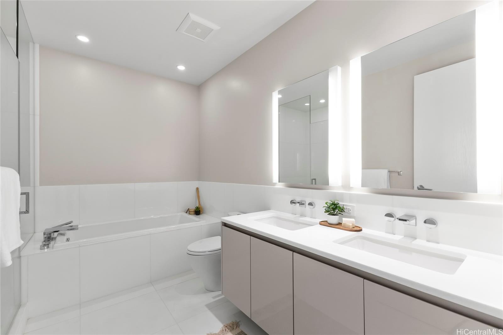 Discover unparalleled luxury at Waiea, the flagship tower of Ward Village. This coveted east-facing 3-bedroom, 2.5-bath residence offers stunning four-directional views of Diamond Head, the Pacific Ocean, Marina, lush mountains, and the vibrant Honolulu skyline.