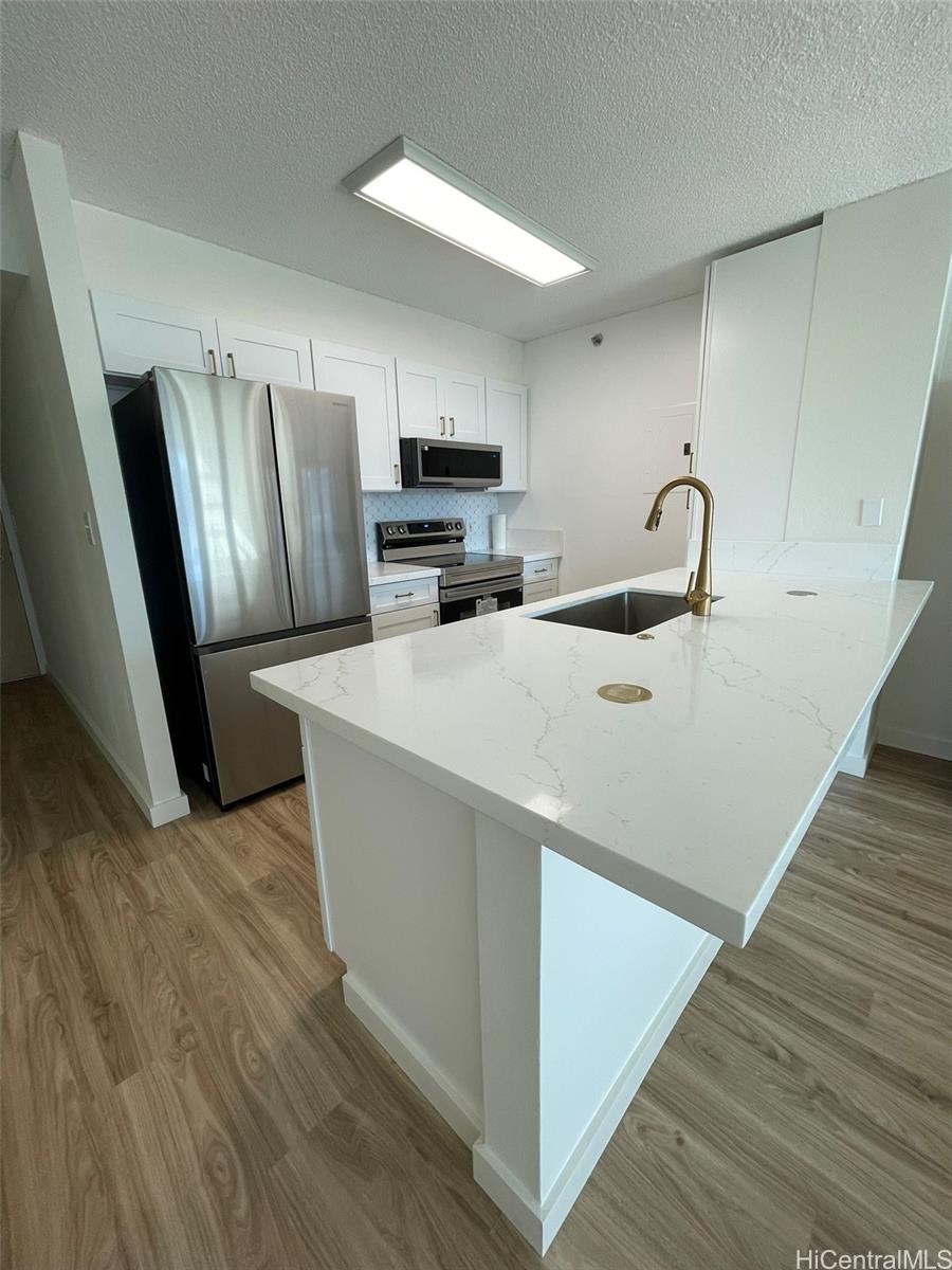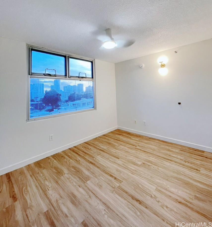 Renovated in 2025! 1448 Young St - built in 1999. Beautiful and bright 2BR/1BA with upgraded luxury vinyl floors throughout, new paint, new bathroom vanity, contemporary open kitchen with new cabinets and new appliances, ceiling fans, new A/C, new light fixtures and more! Centrally located building, close to Ala Moana Shopping Center, Sam's Club, Walmart, restaurants, grocery stores and easy freeway access. Secure building with resident manager and security on duty at entry. Lots of guest parking. Great Leasehold property: City and County of Honolulu owns ground lease. Lease rent is only $1 year until 2029 and lease expires in 2064. Low maintenance fees! Pets: aquarium fish only. Open House Sun, Oct 19 from 2-4pm & Sun, Oct 26 from 2-4pm.