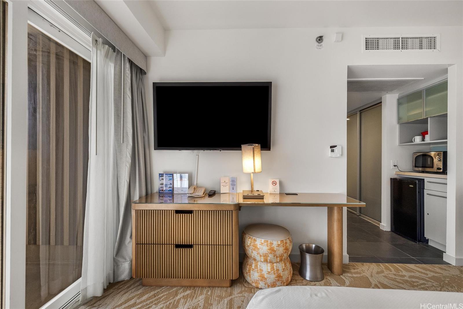 Price to sell! Rarely available CORNER unit featuring an extra-large lanai with stunning mountain/city views. This newly remodeled, elegant condo in a hotel offers a prime location steps from Ala Moana Shopping Center & Ala Moana Beach Park. It's a rare find! This unit is currently in the hotel rental program with high occupancy. Maintenance fee includes internet, cable TV, electricity, A/C, and water.
