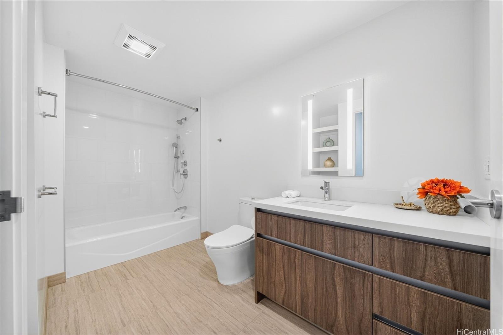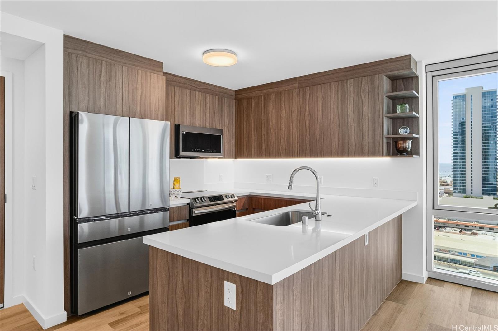 Spacious 2-bedroom, 2-bathroom, 2-parking corner unit, never lived in, located in a vibrant new community at the newly completed The Park on Keeaumoku – Liona Tower, with beautiful ocean, city, and mountain views, just minutes from Ala Moana’s shopping, dining, and entertainment. This bright home features floor-to-ceiling windows, a private wraparound lanai, a modern kitchen with quartz countertops, luxury vinyl plank flooring in the living areas and kitchen, and split A/C in every room for year-round comfort.