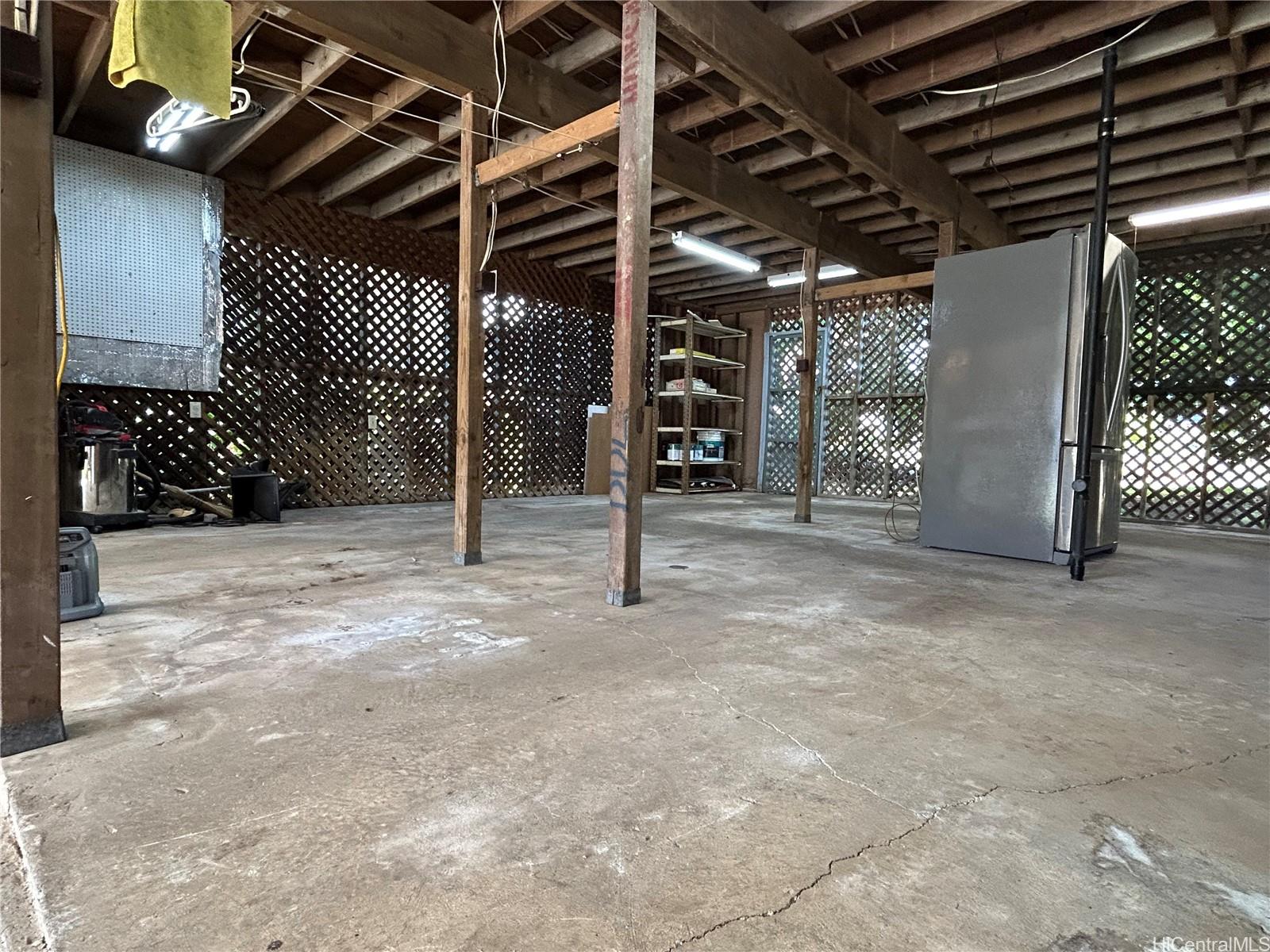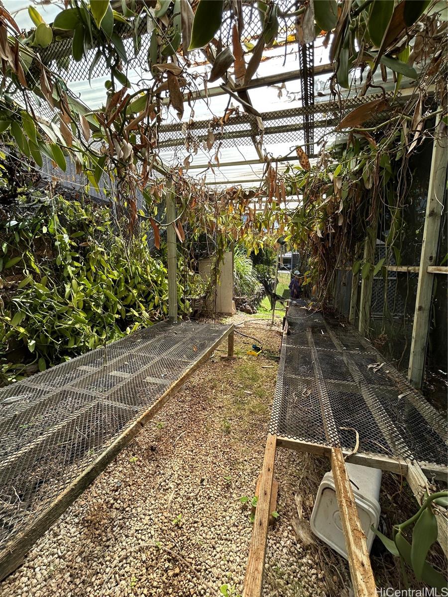 Double wall construction (built 1987), been occupied for many years by a single owner, very little wear & tear. Main living area on the upper level, 3 bdrms. 1.5 baths; ground floor comprises of a spacious 2 car enclosed garage, with an interior entry to house, laundry area, rest of the lower level is a huge unfinished space, workshop? storage? or just waiting to be built out for more living space. Permitted "Green House" in back yard, great for the gardener. Home is Bright & Airy, with high ceilings, split AC system, 28 PV panels with storage battery, (owned), fruit trees in back yard includes lychee, dragon eye, and star fruit. Recent termite treatment, both ground and tent fumigation. Property newly surveyed, pins in place. 2 car secured garage, room to park additional vehicles in the driveway.