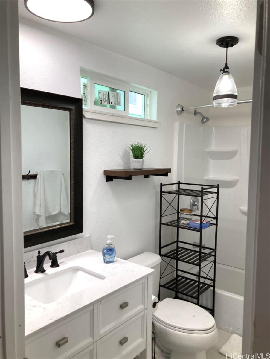 Ocean views and conveniently located in the heart of Laie where Real estate is prime, this contemporary home, built in 2020, has 3 bedrooms, 2 bathrooms upstairs, along with a legal 2 bedroom/1 bathroom ADU downstairs. An additional studio on the lower level completes the exceptional layout of the home and its ability to offset living costs.