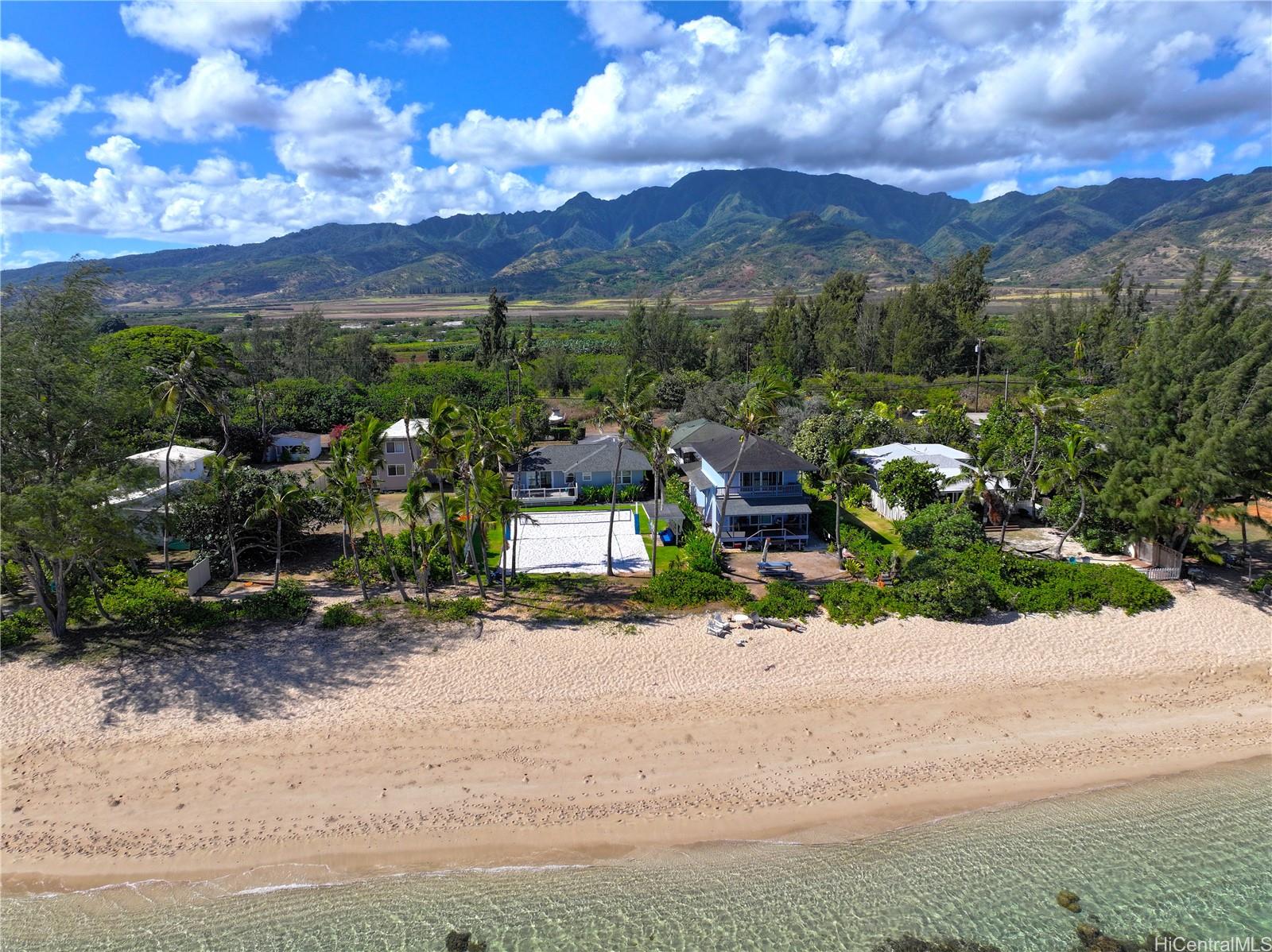 Oceanfront Charm in Mokuleia! Rare opportunity to own a 2BR/1BA beachfront home on highly desirable Crozier Drive. Enjoy stunning ocean views, refreshing trade winds, and direct access to over a mile of white sand beach. This inviting island retreat features a well-equipped kitchen, cozy dining area, and open living space that flows onto a spacious oceanfront deck—perfect for relaxing or entertaining. Step outside to your private beach volleyball court, or surf, fish, dive, and kayak right from your backyard. Unlike many shorelines, this beach has naturally grown over the years through accretion, not erosion. Just minutes from historic Hale‘iwa Town’s shops, dining, and charm. Sale includes an additional 3,600 sq. ft. lot across the street for extra parking, gardening, or storage, totaling approx. 17,000 sq. ft. Close to Dillingham Airfield and Mokule‘ia Polo Field. Experience the best of the North Shore—tranquil, adventurous, and truly one of a kind! Enjoy breathtaking sunsets, star-filled nights, and the soothing sound of waves—your ultimate oceanfront escape awaits. A timeless Hawaiian hideaway where every day feels like vacation.