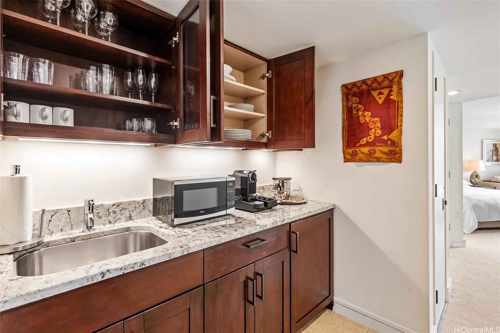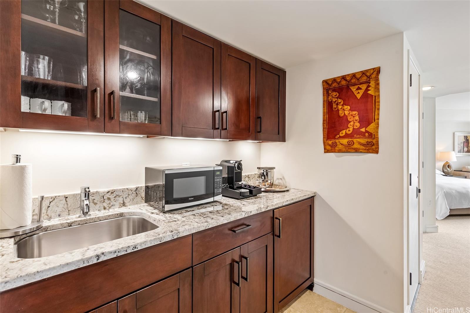 Updated Photos Coming Soon! Well appointed turn-key studio with ocean, Diamond Head, & Waikiki views at Ka Lai Waikiki Beach (formerly Trump International). This luxury studio is well appointed with marble floors, granite countertops, separate soaking tub & shower, Toto toilet, & designer fixtures. The residence is fully furnished and turn-key ready for immediate enjoyment. As part of the prestigious Ka Lai Waikiki Beach Resort, world-class amenities include a sparkling infinity pool, fitness center, full-service spa, bar, restaurant, business center, surfboard storage, free valet, and concierge services. Centrally located in Waikiki, just steps from sandy beaches, fine dining, nightlife, and luxury shopping. Perfect pied a terre vacation home or investment opportunity. Onsite rental program available from Hilton Hotel’s new brand of LXR Resorts & Hotels. BEST value unit in the building! Special assessment of $708/month ends December 2025 according to Ka Lai management office. SELLER HAS PAID THE FULL $108,500 FEE FOR THE UNIT INTERIOR RENOVATION COST so the unit IS ELIGIBLE for the Rental Program.