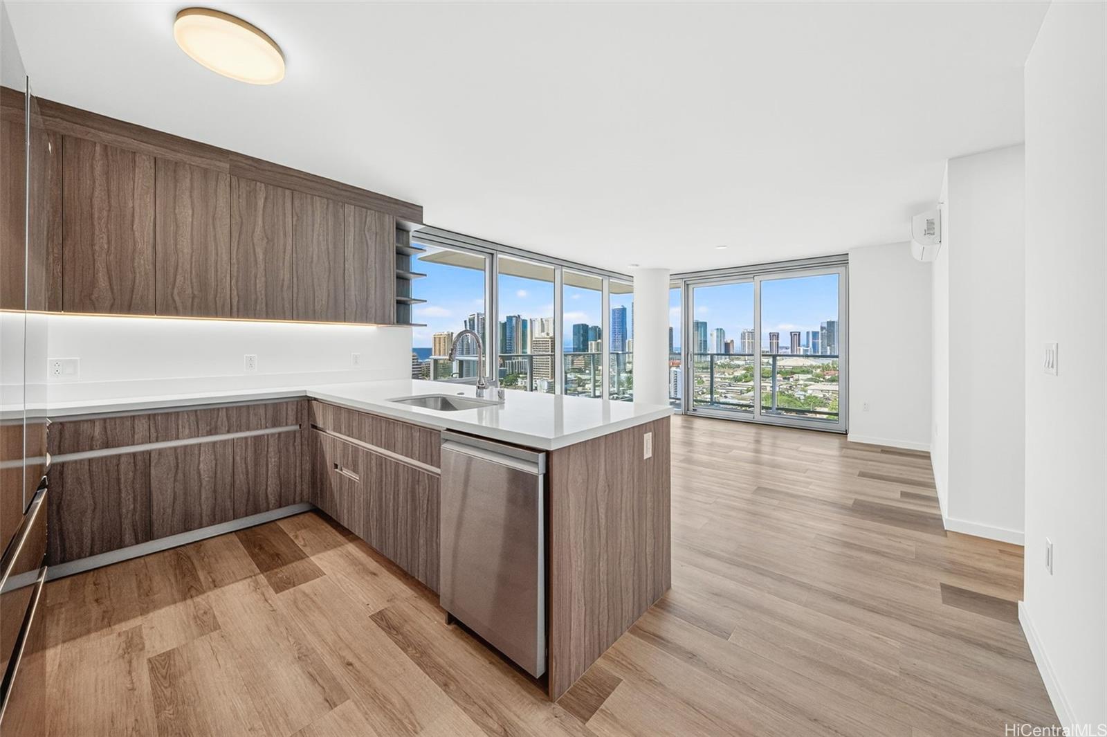 Welcome to The Park on Keeaumoku, Honolulu’s newest modern community near Ala Moana Center, world-class dining, and entertainment. This brand-new corner unit (2 bed / 2 bath / 2 parking) offers stunning ocean, city, and park views through floor-to-ceiling windows. Features include quartz countertops, luxury vinyl plank flooring, split A/C in every room, a walk-in closet, separate laundry room, and a private wraparound lanai. Enjoy resort-style amenities — infinity pool, spa, BBQ pavilions, theater, fitness & yoga studios, sauna, and stylish clubrooms. Experience modern island living at its finest in this spacious new home where luxury, convenience, and lifestyle meet.
