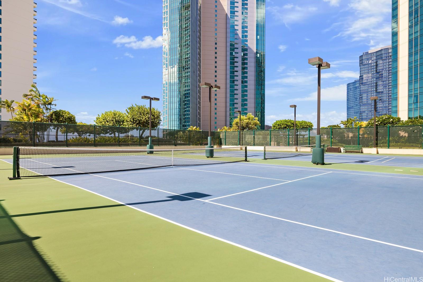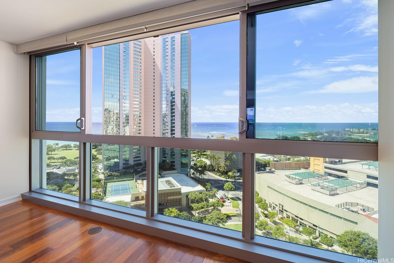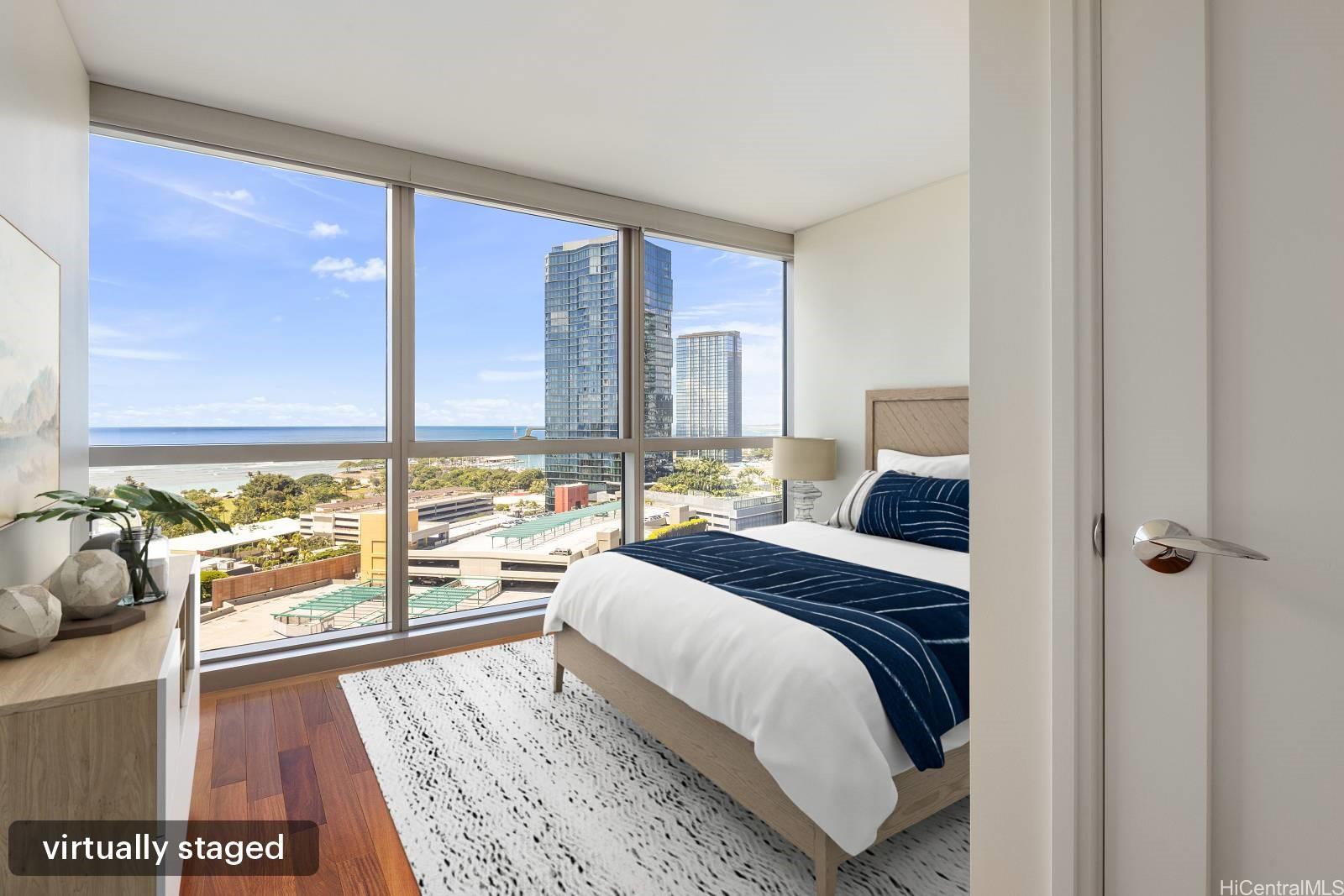 KO'OLANI - live in the jewel of Kaka'ako. Prime 3 bedroom, 2 bath floor plan with stunning ocean & sunset views. Two full sized, side by side covered parking stalls conveniently located on the ground floor for easy access. Upgrades include engineered hardwood floors, Toto toilets with remote and auto lid, motorized window shades and custom closet system in the primary bedroom. Rarely available in a condo- Viking gas range, built-in refrigerator. New built-in microwave, newer dishwasher and front load washer/dryer. Brand new central A/C system and Nest controller for cool, comfortable living. Maintenance fee includes cable TV, gas, water, sewer, bldg insurance & common area maintenance. Amenities: heated saline pool, whirlpool, tennis courts, putting green, billiard room, movie/media room, business office, gas BBQ grills and gazebos, guest parking, full time staffed front desk & resident manager. Walking distance to Ala Moana Shopping Center, Ala Moana Beach Park, Foodland Farms, Whole Foods, restaurants, movie theaters, park and many more. Freshly painted and professionally cleaned. Ready to move in and enjoy living the life in Honolulu!