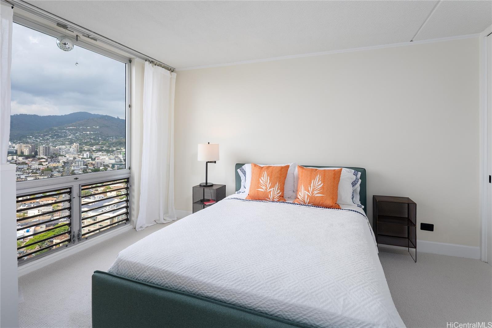 Elevated island living awaits from this high-floor residence at 1717 Ala Wai! Beautifully maintained and move-in ready, this spacious 2-bed/2-bath home features upgraded jalousie windows throughout and new bedroom carpeting. The kitchen shines with expansive granite counters, hardwood cabinetry offering exceptional storage, and a brand-new stainless refrigerator and dishwasher. Step inside and immediately feel at home-bright, breezy, and inviting. Relax on your lanai and enjoy sweeping views from the ocean and the Ala Wai Canal to the sparkling city skyline and Koolau Mountains, with spectacular sunset to end your day. 1717 Ala Wai is known for its warm, neighborly atmosphere and unbeatable location near Waikiki's beaches, shops, dining, and Ala Moana Shopping Center. A proactive, well-managed building with major plumbing, elevator, spalling, and painting projects already completed-special assessment runs through 2028. Discover comfort, convenience, and classic Honolulu charm in one of Waikiki's most desirable communities.