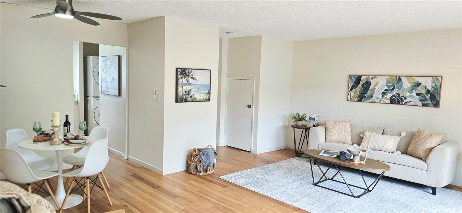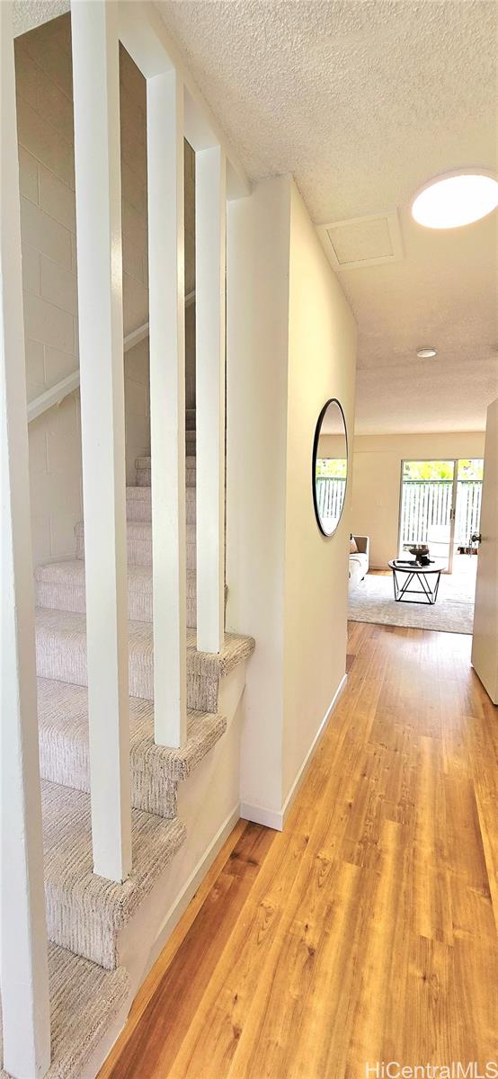 Welcome to Pacific Village! This beautifully renovated split-level 3-bedroom, 2.5-bath townhouse offers approx. 1,294 sq. ft. of stylish living in the heart of Aiea. Renovated in October 2025, the home features all-new appliances, new kitchen and bathroom cabinets, luxury vinyl flooring, upgraded carpet, and ceiling fan. Enjoy a spacious layout, private patio perfect for relaxing, and a partial view of Pearl Harbor. Located across from Pearlridge Center with quick access to shopping, dining, golf, and bus lines. Community amenities include an on-site pool, playground, BBQ area, and two assigned parking stalls. A great opportunity to own in a well-connected neighborhood close to everything you need!
