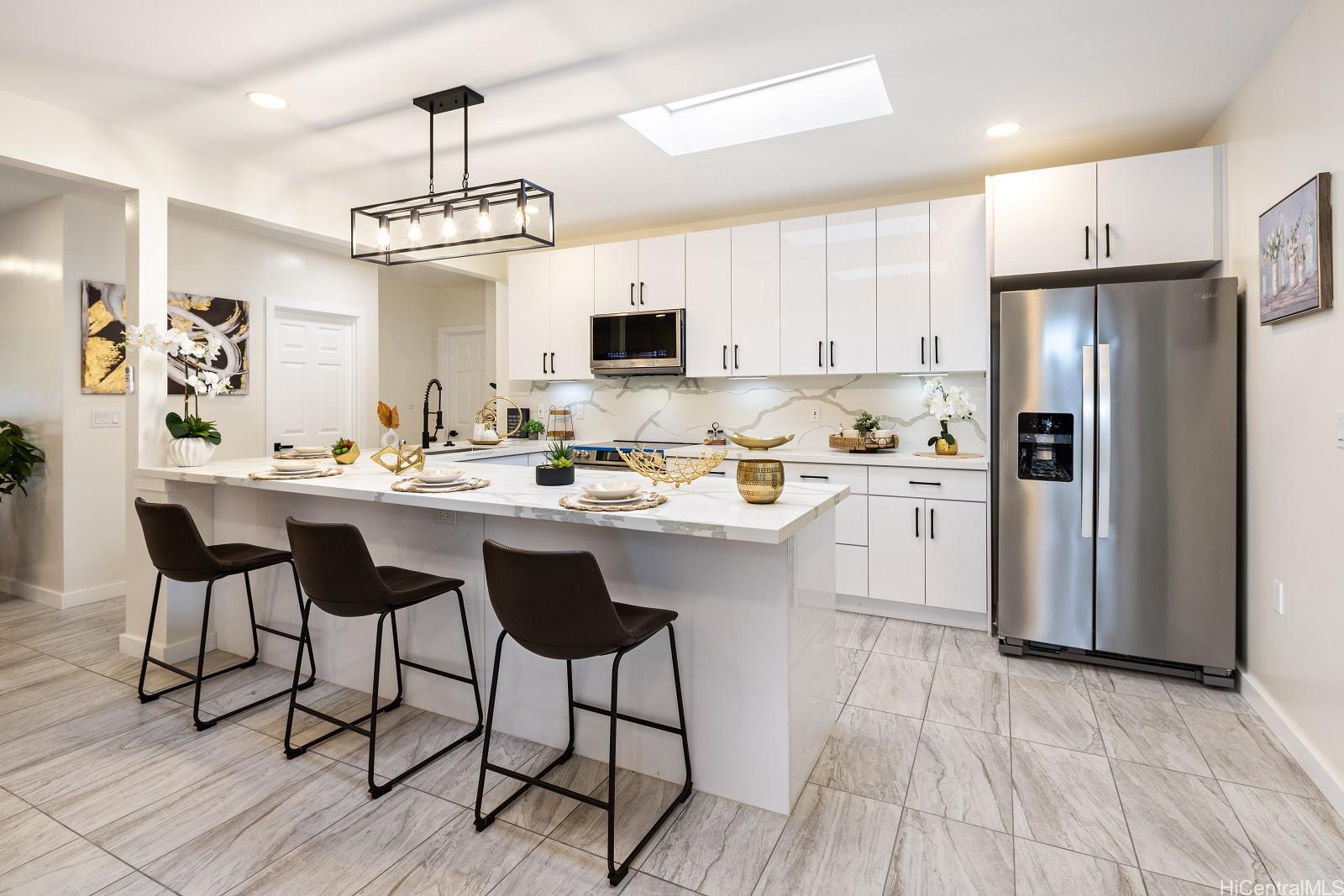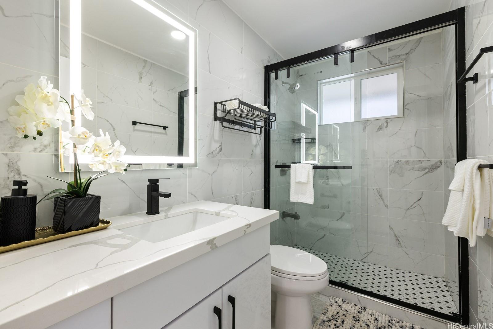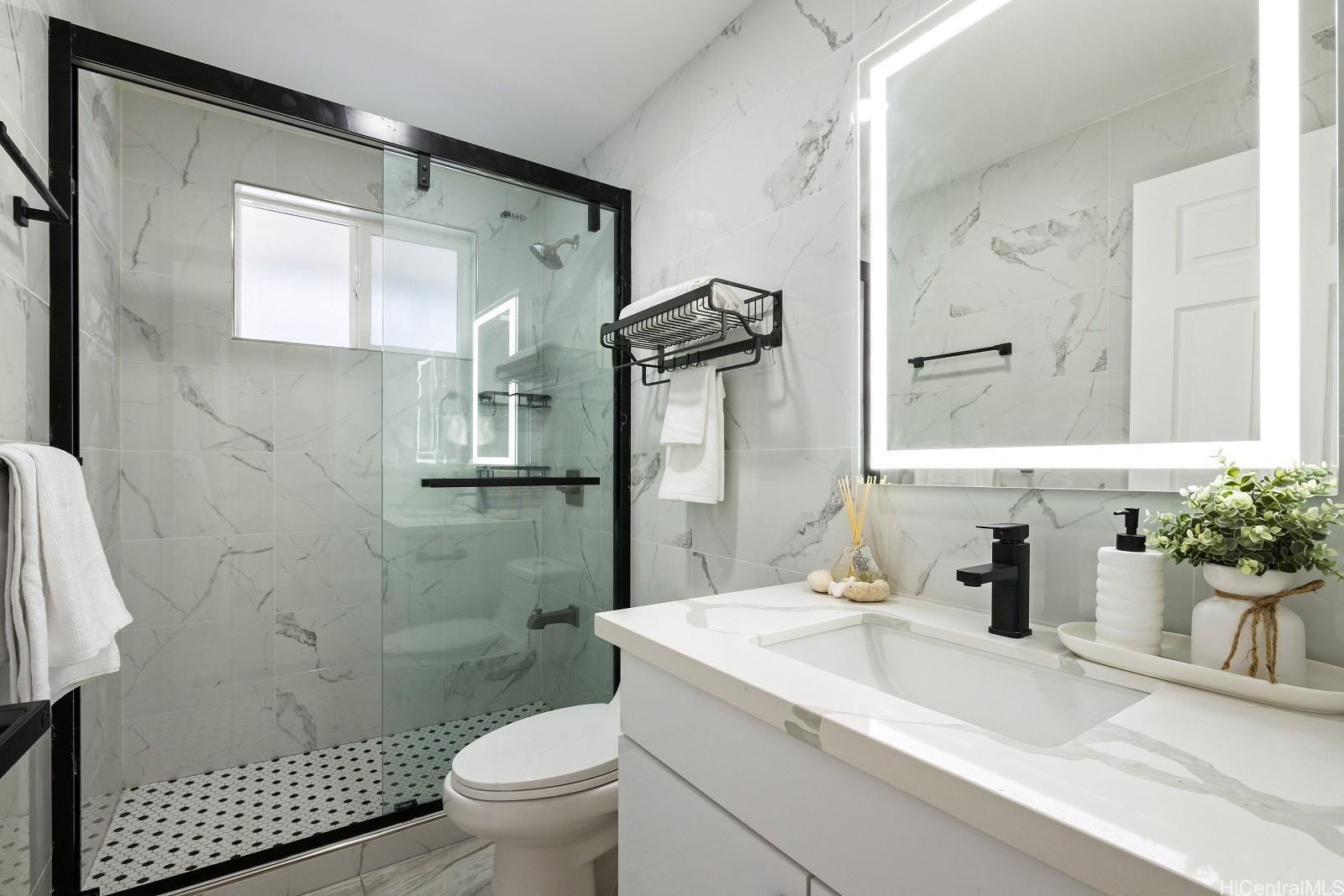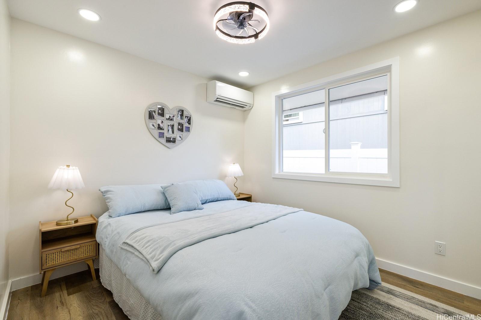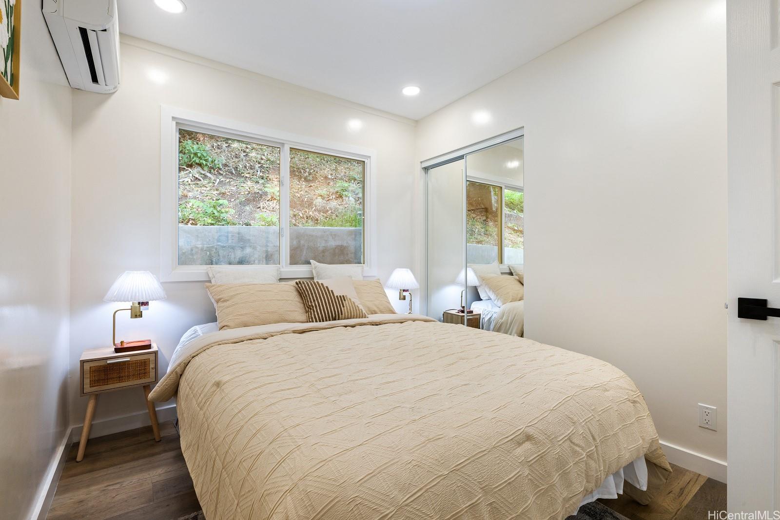 Discover this beautifully renovated 7-bedroom, 4-bath luxury home tucked away in the peaceful heart of Kalihi Valley. This rare property blends modern comfort, island charm, and multi-family versatility. Enjoy two spacious living rooms and two fully equipped kitchens with brand-new stainless steel appliances, stylish laminate flooring, and a chef’s dream U-shaped island. Each bedroom has its own split A/C for year-round comfort. Meticulously updated by a licensed contractor with proper permits, this home includes new electrical wiring and plumbing. Designed for flexibility, it offers three separate entrances—ideal for multi-family living or rental opportunities. Energy-efficient solar hot water heating adds sustainability and lowers costs. Relax or entertain on the rooftop terrace with breathtaking mountain views—perfect for yoga, barbecues, or stargazing. Outside, a tropical garden with lush greenery, vibrant flowers, two mature mango trees, and an automatic irrigation system creates your island retreat. Additional highlights include four parking stalls, ample street parking, and a quiet cul-de-sac minutes from schools, shopping, and freeway access.