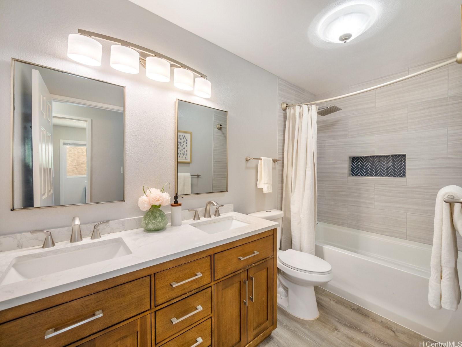ハワイカイの人気のカラマバレー地区に位置する、美しく改装された平屋建ての3ベッドルーム、2バスルームの住宅へようこそ。このモダンな住宅は、広々としたオープンフロアプランに高級ビニール板張りのフローリングを敷き詰め、全面改装されたキッチンにはクォーツのカウンタートップ、ステンレス製の家電、洗練されたキャビネットが備わっています。広々としたフェンスで囲まれた庭、緑豊かな芝生、おもてなしに最適なトレックス製のプライベートデッキ、そして快適さを高めるビニール製のプライバシーフェンスで、屋内と屋外がシームレスにつながった生活をお楽しみください。また、スプリットエアコン、改装済みのバスルーム、そして細部までこだわった仕上げも魅力です。有名なサンディビーチ、ココヘッドクレーター、カラマバレーパーク、そして一流の学校からわずか数分という理想的な立地です。ハイキングコース、ショッピング、レストランへのアクセスも良く、ハワイカイの便利なロケーションも魅力です。次回のオープンハウスは12月14日(日)12:30~15:00です。
